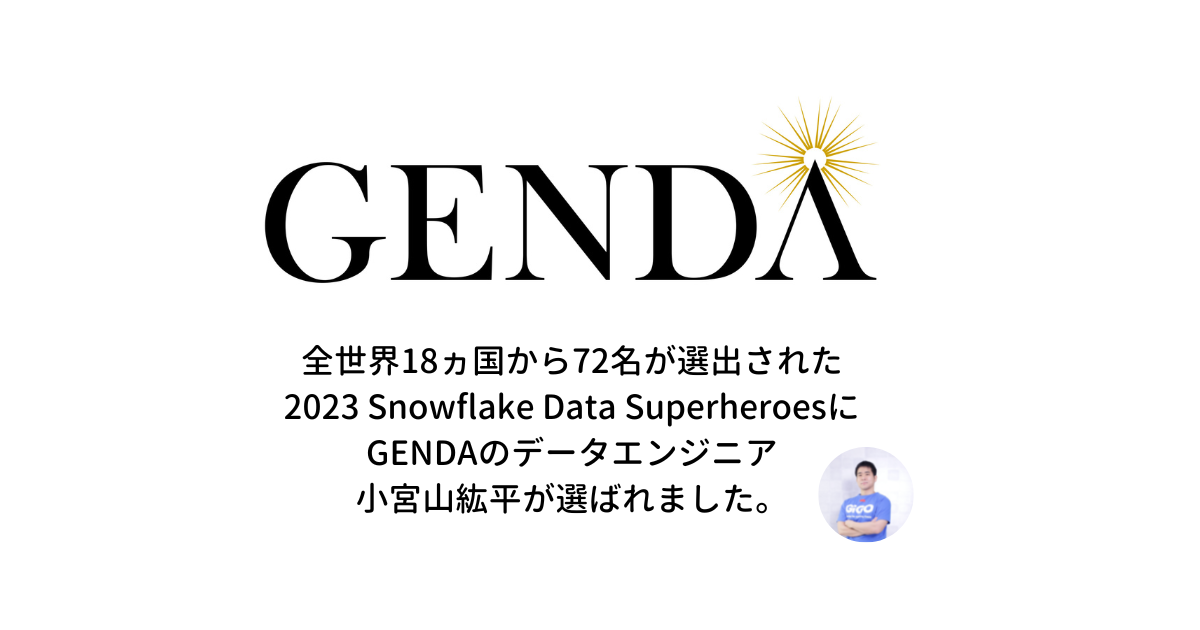 株式会社GENDA (本社:東京都港区、代表取締役会長:片岡 尚、代表取締役社長:申 真衣、以下当社)のデータエンジニア・小宮山紘平 が、クラウドデータプラットフォームサービスSnowflakeの 「2023 Snowflake Data Superheroes (以下 Data Superheroes)」 に選出されました。小宮山はデータ基盤構築及びデータ活用推進を専門としており、当社のアミューズメント施設事業のDX推進に深く貢献しております。2023年のData Superheroesには、全世界18ヵ国から72名が選出されています。