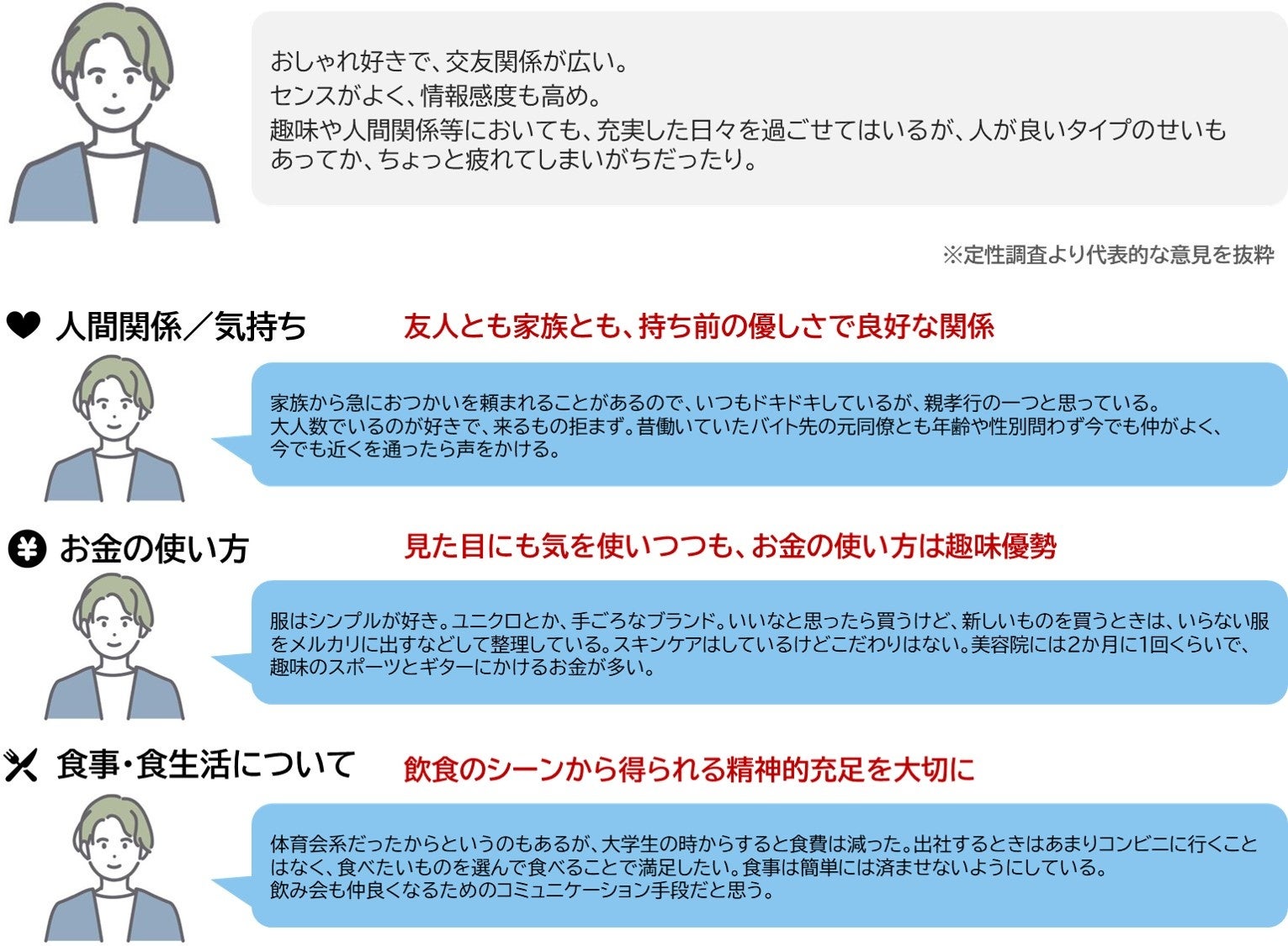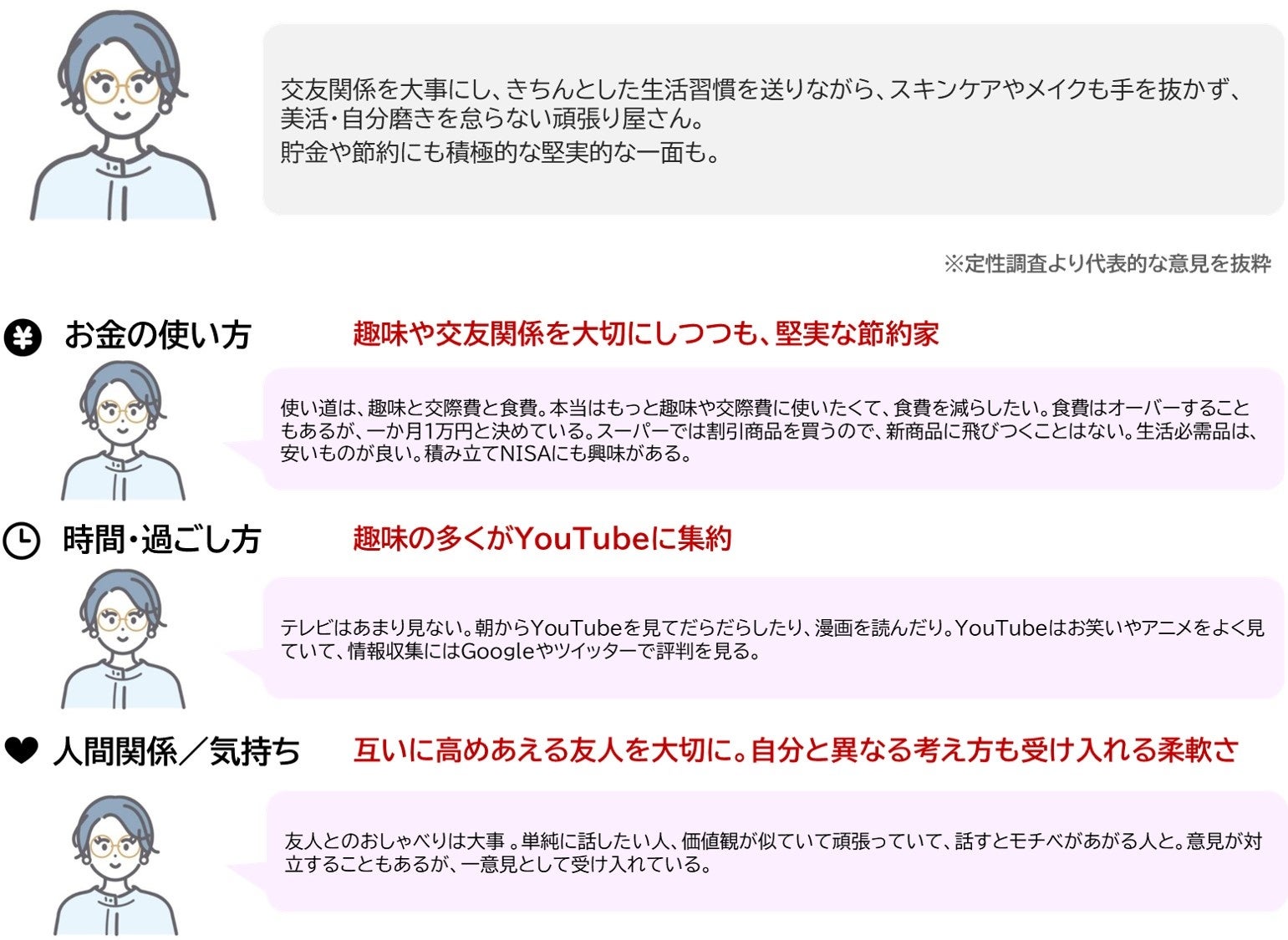 ※1:食品飲料品の購入実態、時間の使い方、消費行動(お金)、美意識、住環境、人付き合い、気持ち・考え方、SDGs 等