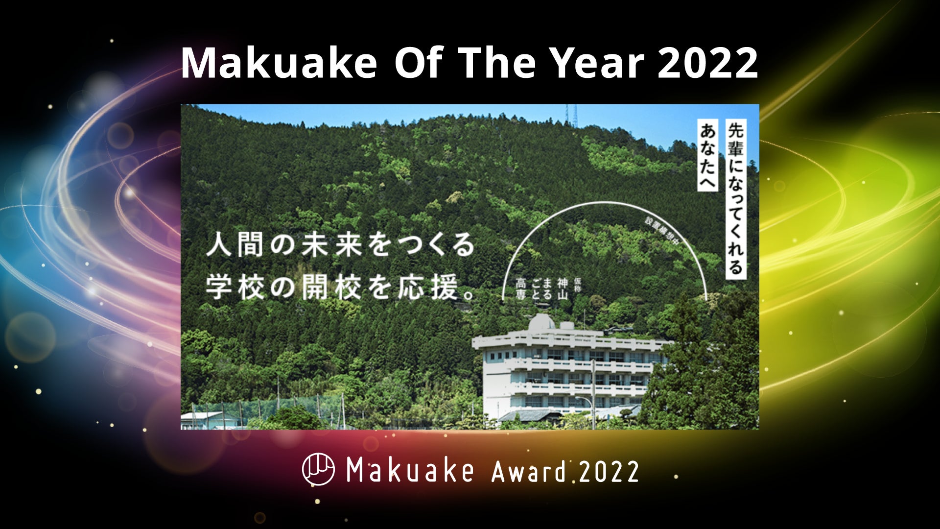 私立高等専門学校「神山まるごと高専」は、同校が応援購入サービス「Makuake」にて実施した「あなたも「学校作り」しませんか? 神山まるごと高専(仮称)設立プロジェクト」が、「Makuake Award 2022」において、「Makuake Of The Year GOLD賞」を受賞したことを発表します。