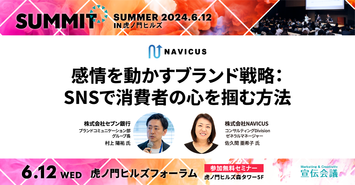 2024年6月12日(水)、東京の虎ノ門ヒルズフォーラムで開催される『宣伝会議サミット2024(夏)東京』にNAVICUSが登壇いたします。