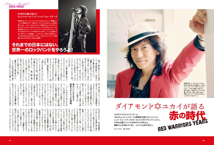 とびきりいかしたロックンロール。それもちょっとバッドボーイな雰囲気を漂わせていたバンド、レッド・ウォーリアーズのボーカリストがダイアモンド☆ユカイ。70年女を魅了していた80年代から35年以上、解散から33年経った今も、ユカイには赤が似合う。