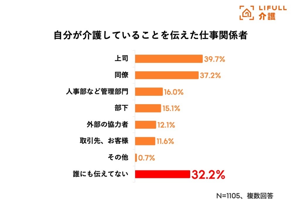 今回の調査では、ワーキングケアラー1105人に、介護していることを職場の人に伝えたかどうかを聞きました。