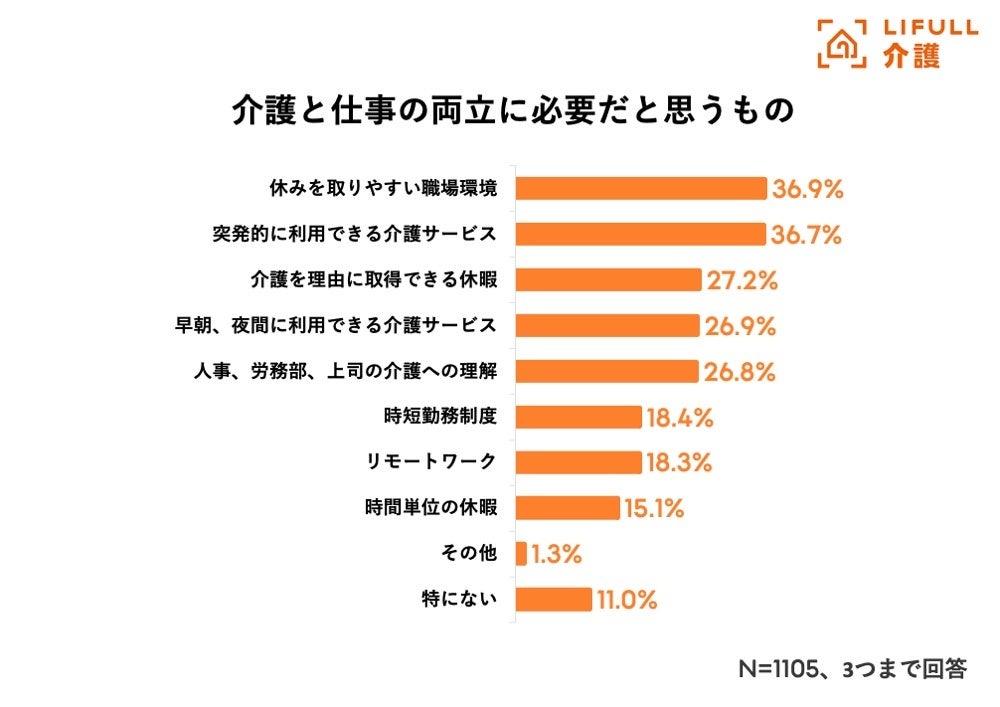 仕事と介護の両立に必要なもの上位は「休みを取りやすい文化のある職場」