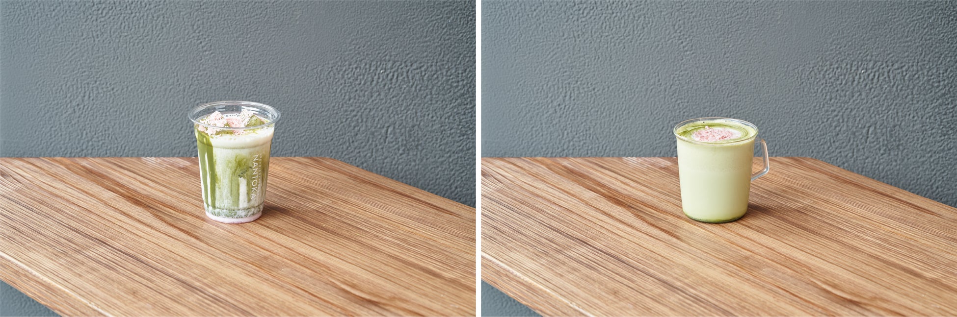 濃い抹茶ラテに桜シロップと桜チョコを使用し、春を感じる抹茶ラテに仕上げました。