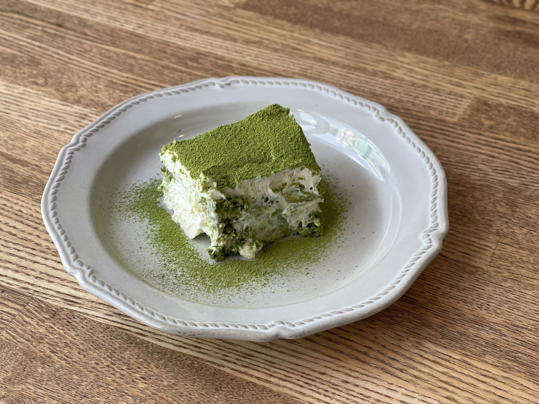 抹茶の苦味とマスカルポーネチーズを使った自家製クリームが相性抜群のスイーツです。
