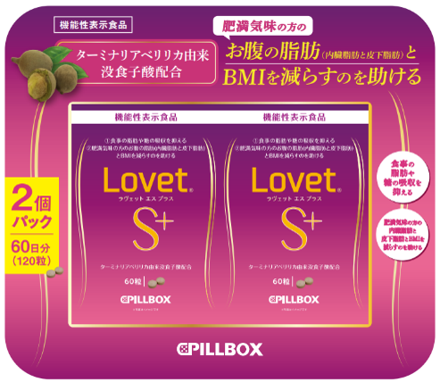 “食事の脂肪や糖”、“お腹の脂肪※とBMI” が気になる人に嬉しい!話題の「ターミナリアベリリカ」が手軽に摂れるサプリ「Lovet S+」から、10月16日よりコストコ限定2箱セットが順次販売開始!