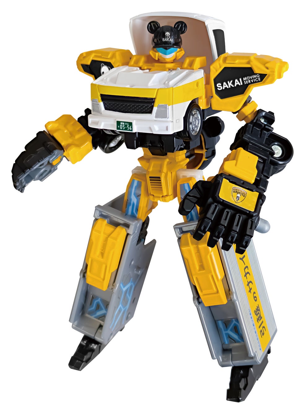 2022年12月に青色をベースにした旧ユニフォームバージョンのジョブレイバーが発売されましたが、 2025年5月に当社はコーポレートカラーである黄色をベースにユニフォームをリニューアル。この度、新ユニフォームのデザインで新発売されます。アーマービークル「サカイ引越センター 引越トラック」が引越ジョブロイド「KOKORO」くんと合体し、サカイ引越センターのロボット「キャリーブレイバー サカイ引越センター 引越トラック」というロボットになります。ぜひお楽しみ下さい。
