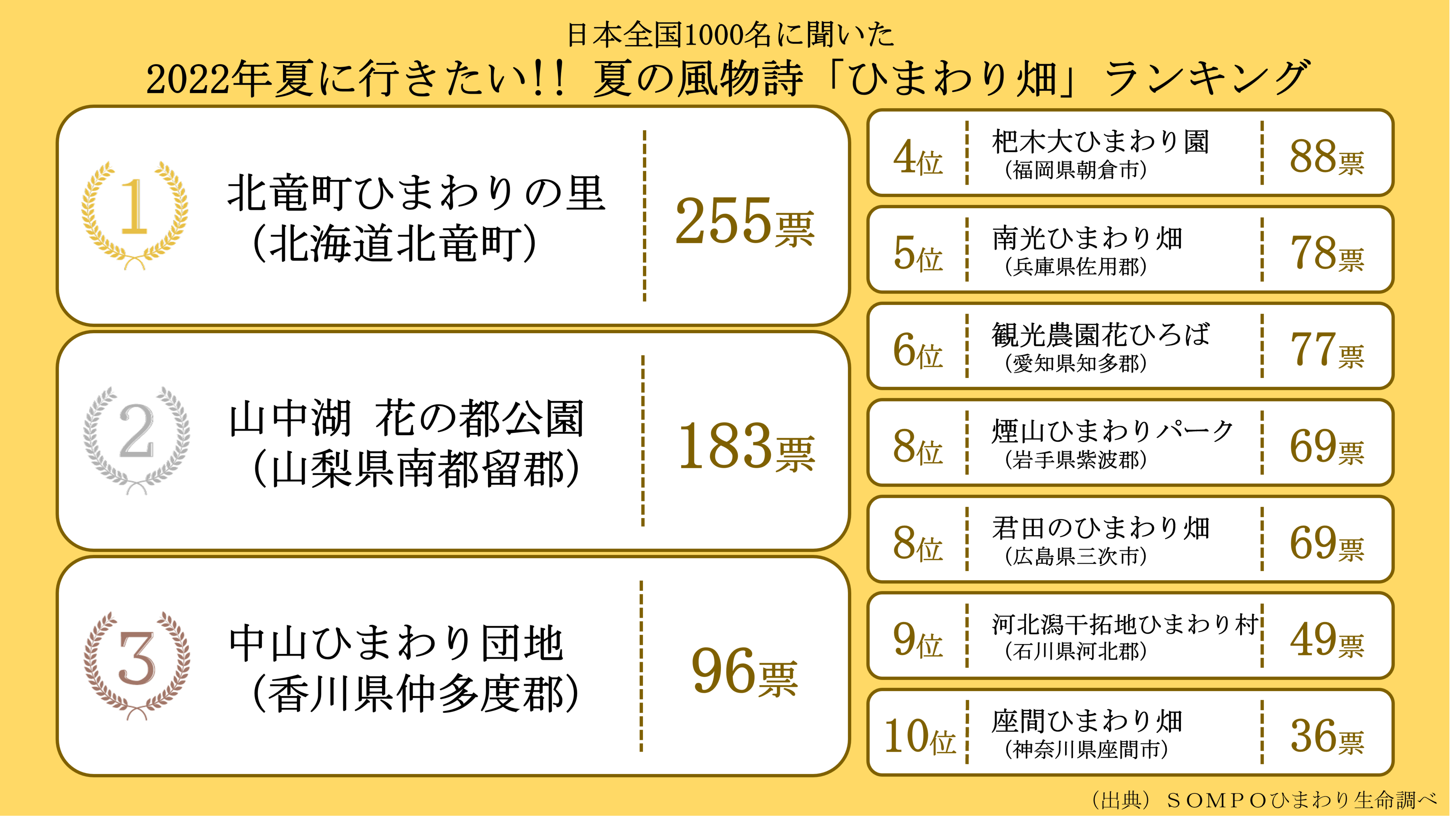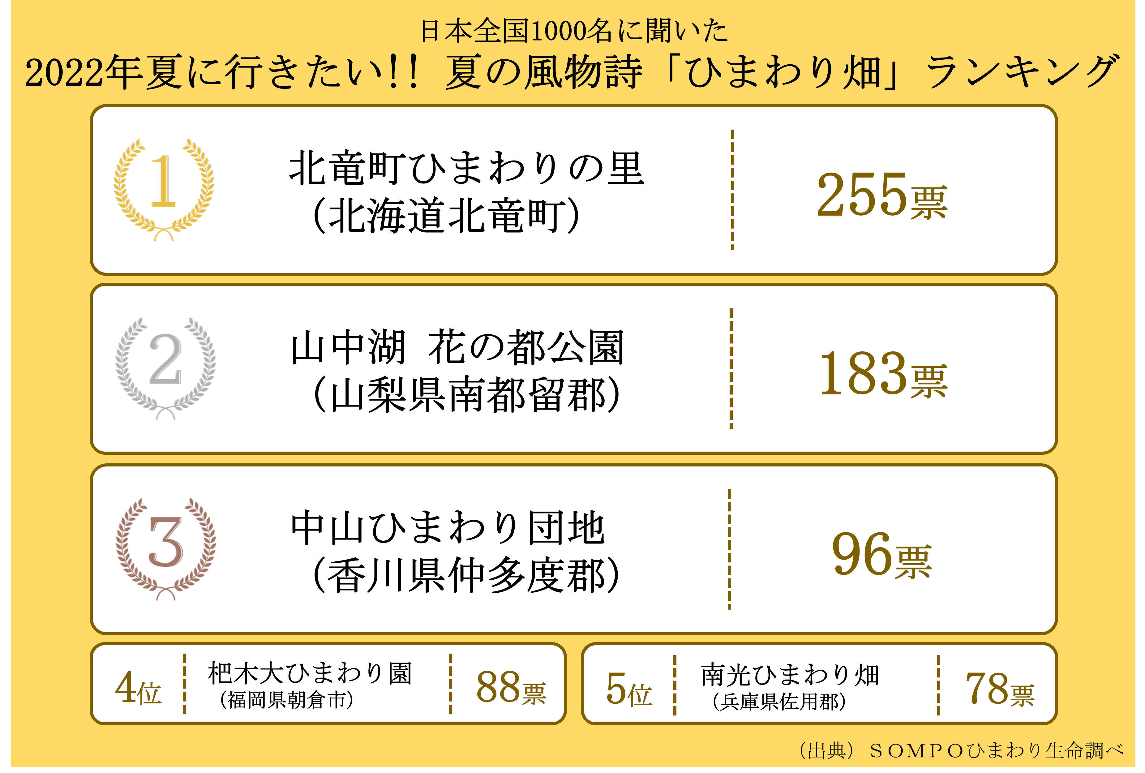(参考1)日本全国1000名に聞いた 2022年夏に行きたい 夏の風物詩「ひまわり畑」ランキング