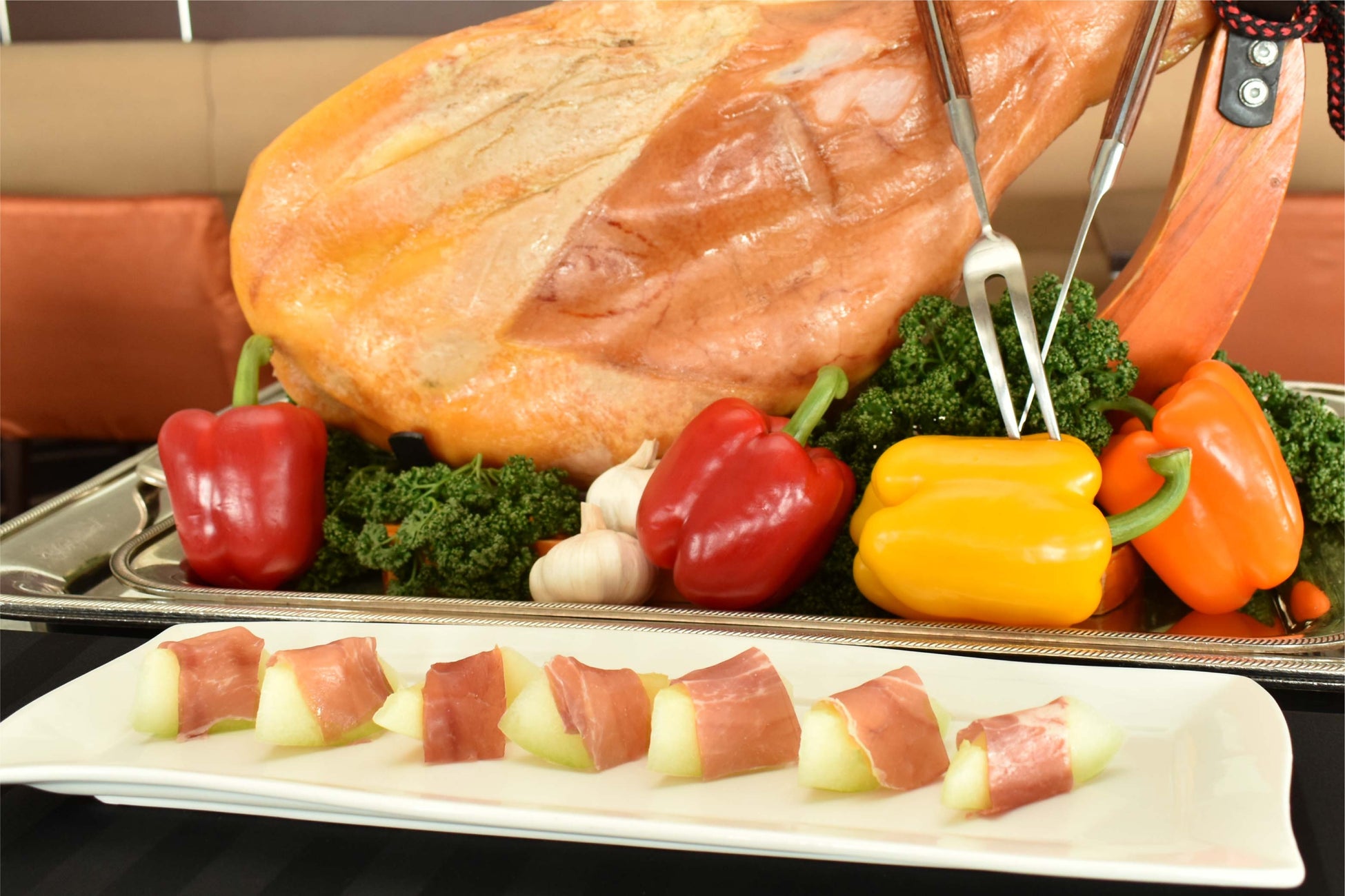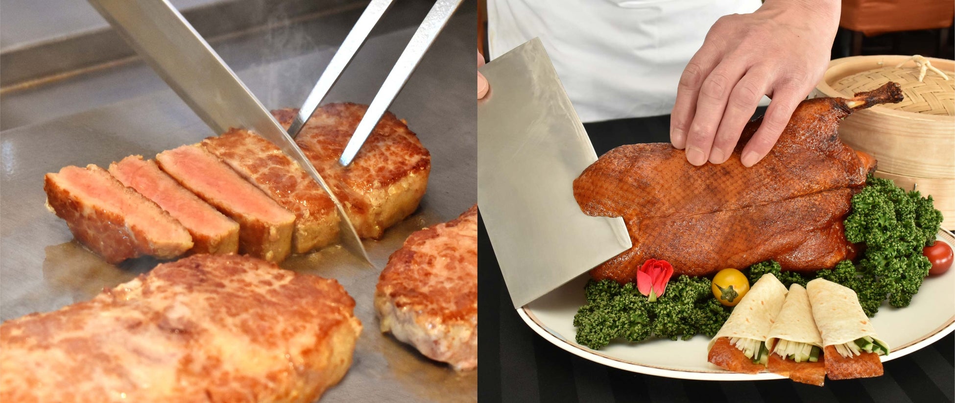 ローストビーフ/北京ダック/生ハムとフルーツ/焼きたてステーキ