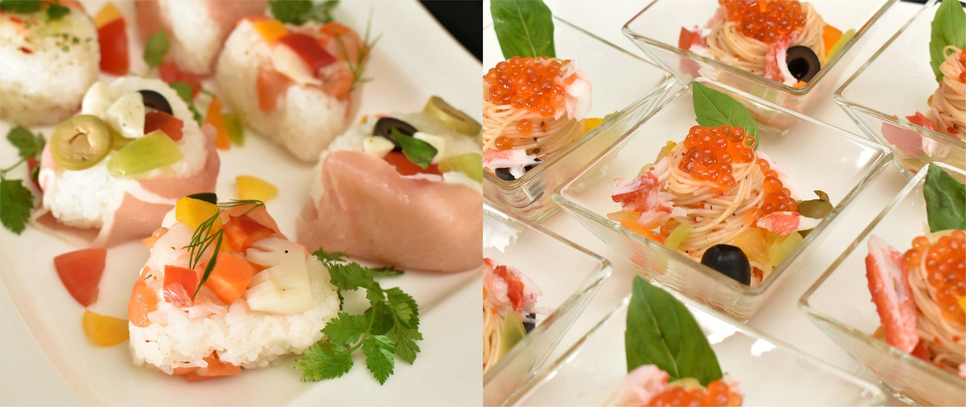 パリおにぎり/ミニローストビーフ丼/冷製カッペリーニ/冷製サーモンオゼイユ いくら添え/クスクスサラダ チーズとイタリアンパセリ添え/オリーブと野菜のグレッグ/鶏むね肉のバプール ハニーマスタードソース/ビーンズタルトフランベ仕立て/カラートマトのコンポート ボッタルガパウダー/枝豆の冷製スープ/コールミート/フリッタータ/合鴨のロティ シェフの気まぐれソース/ビックハンバーグ トリュフ風味のスクランブル添え 特製デミグラスソース/ソーセージと野菜のブロシェット風/豚肉のコンフィ シャルキティエールソース/星龍特製酢豚/イカのブリュレとピュレドシューフルール シトロンソース/スパニッシュオムレツ/クリームコロッケ蟹身の入ったソース/ 魚介類のパエリア/ミルクゼリー&バタフライピーゼリー/ダークチェリータルト/わらび餅/プティレモンケーキ/チョコミント/フルーツ盛り合わせ/アイスクリーム(6種類)/チョコレートファウンテン/パンケーキ/ソフトドリンク各種/他
