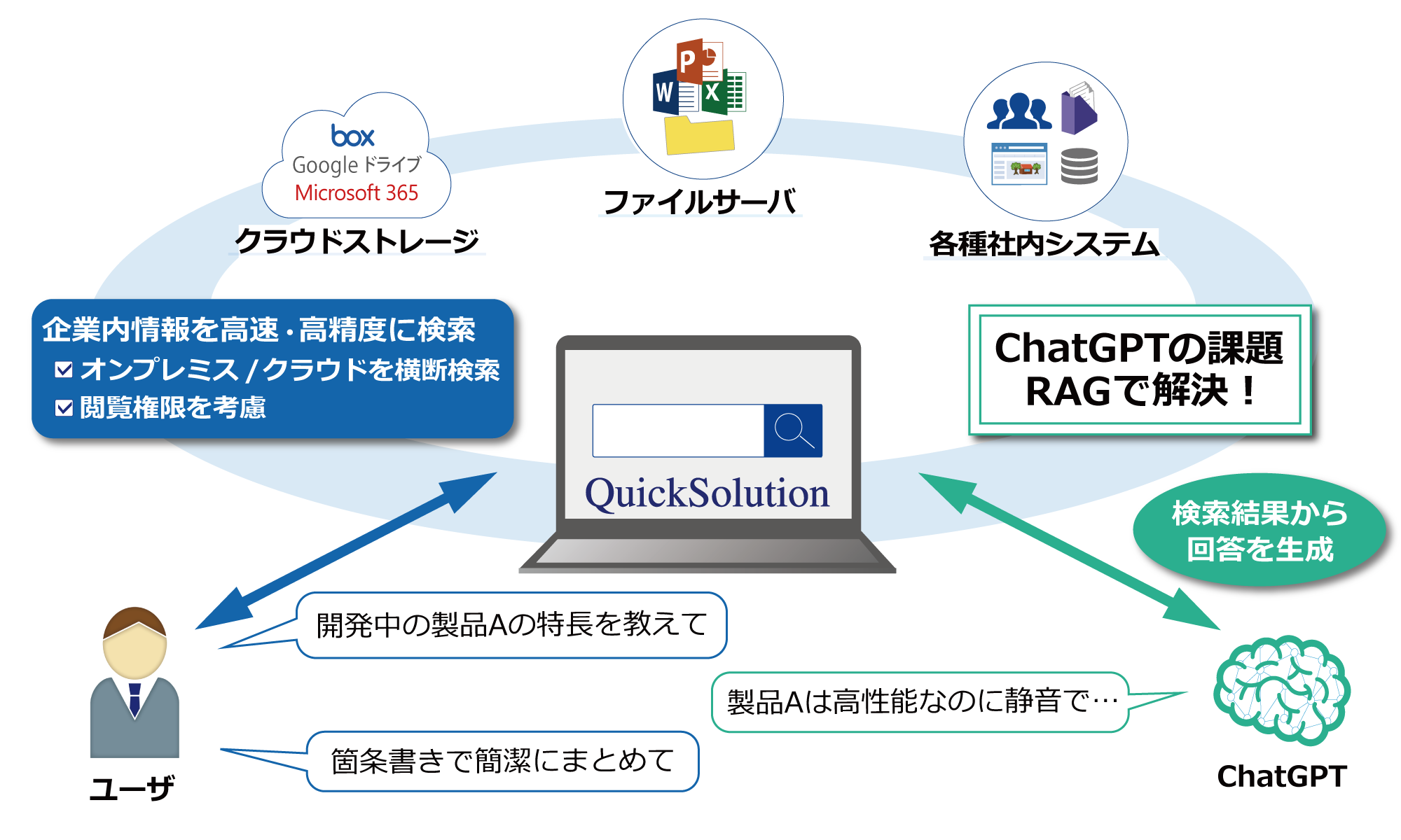 ChatGPTと連携して社内の情報に質問応答できる企業内検索システムを販売開始~QuickSolution®がRAGによる質問応答機能を提供~