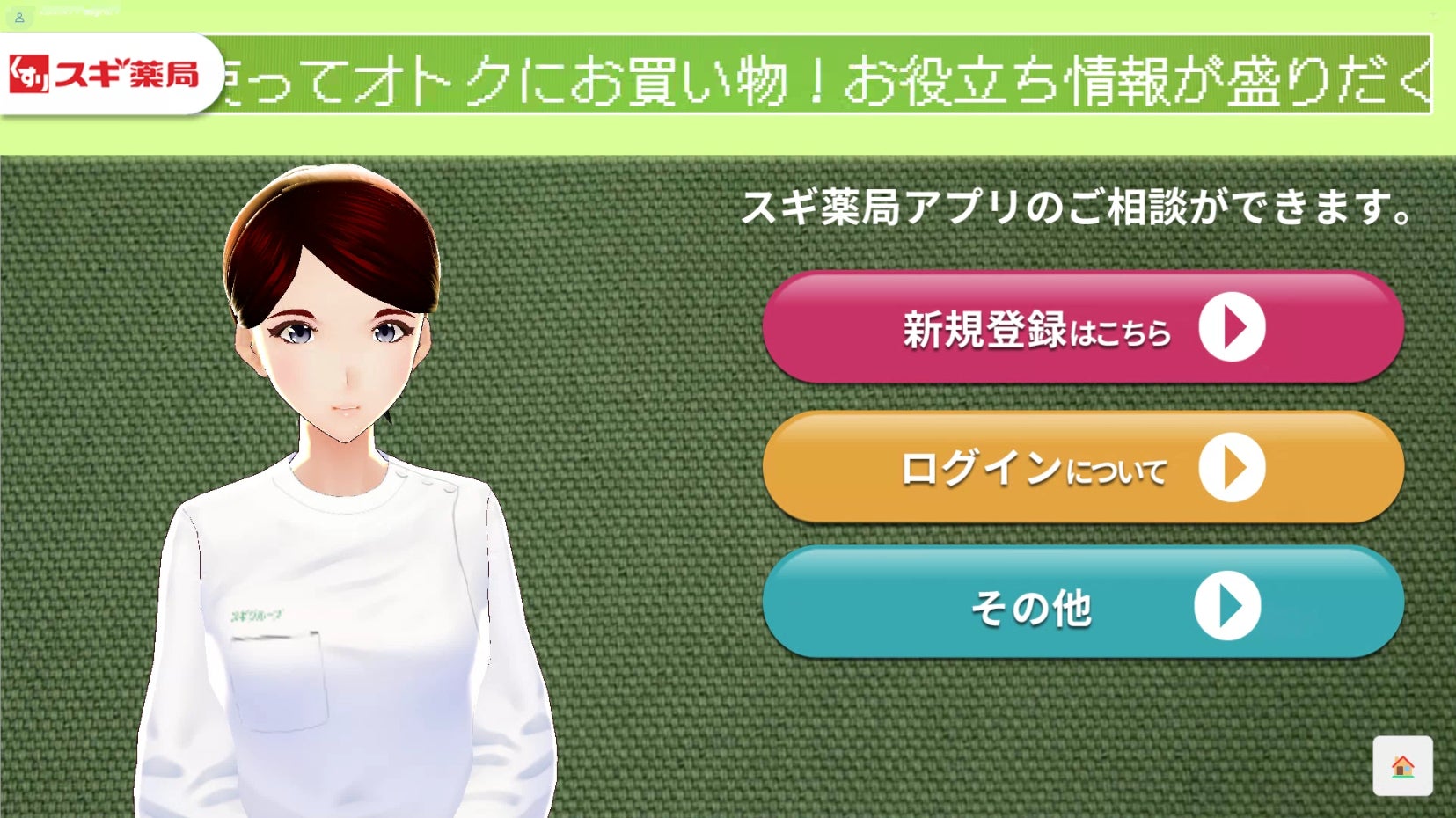 「アプリカウンター」とは、スギ薬局アプリをはじめとした、アプリに関するお困り事を解決する窓口として、スマホへのダウンロード方法、ポイントカードの連携や、クーポンの使い方など各種機能に関する操作説明を、遠隔地にいるオペレータがアバター越しに接客するサービスです。