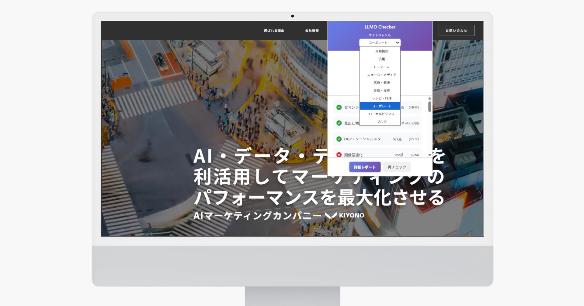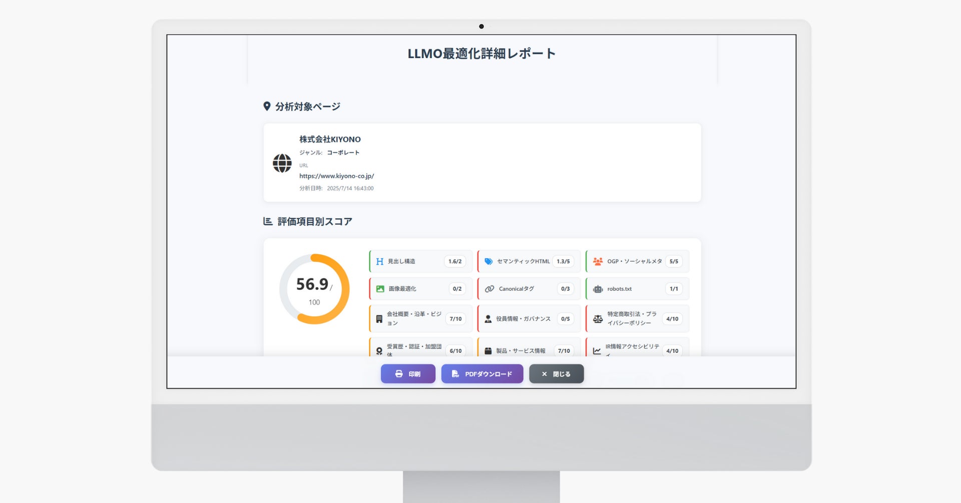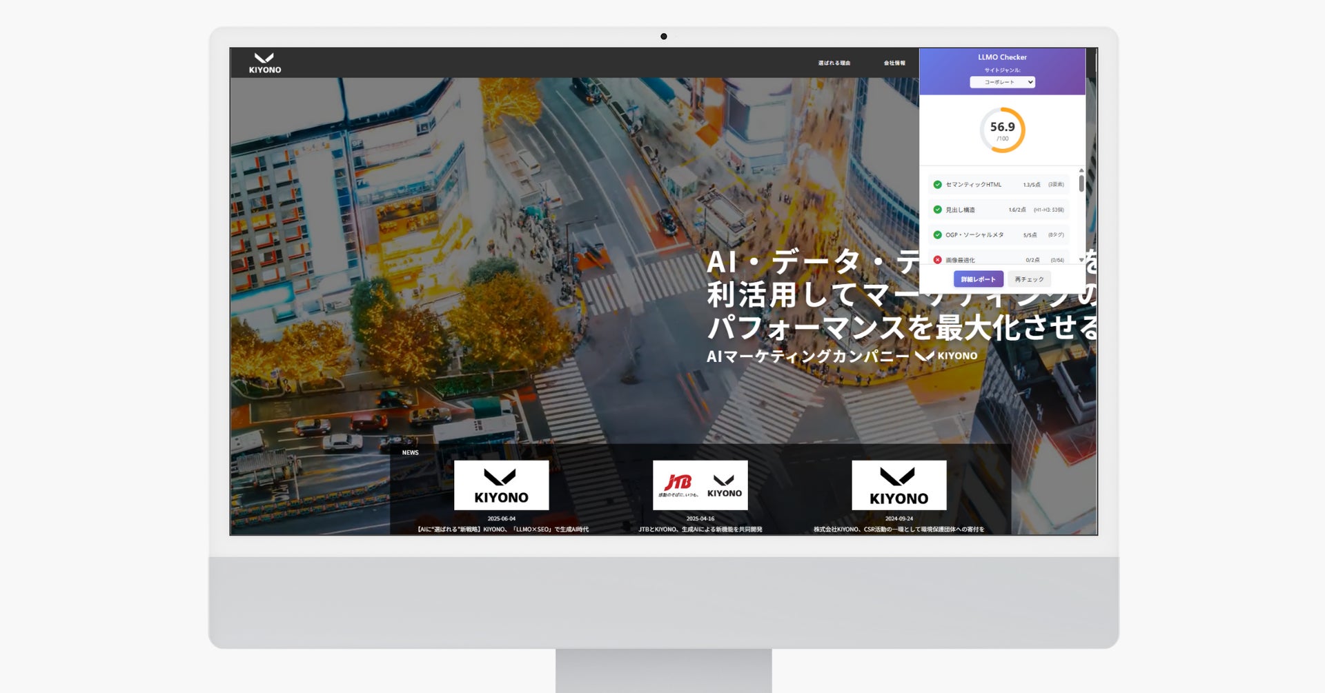 株式会社KIYONO(本社:東京都港区、代表取締役:清野賢一)は、WebサイトのLLMO(Large Language Model Optimization)対策度合いを分析し、詳細な改善提案を提供するChrome拡張機能「LLMOチェッカー」(β版)を開発・社内リリースしたことを発表いたします。
