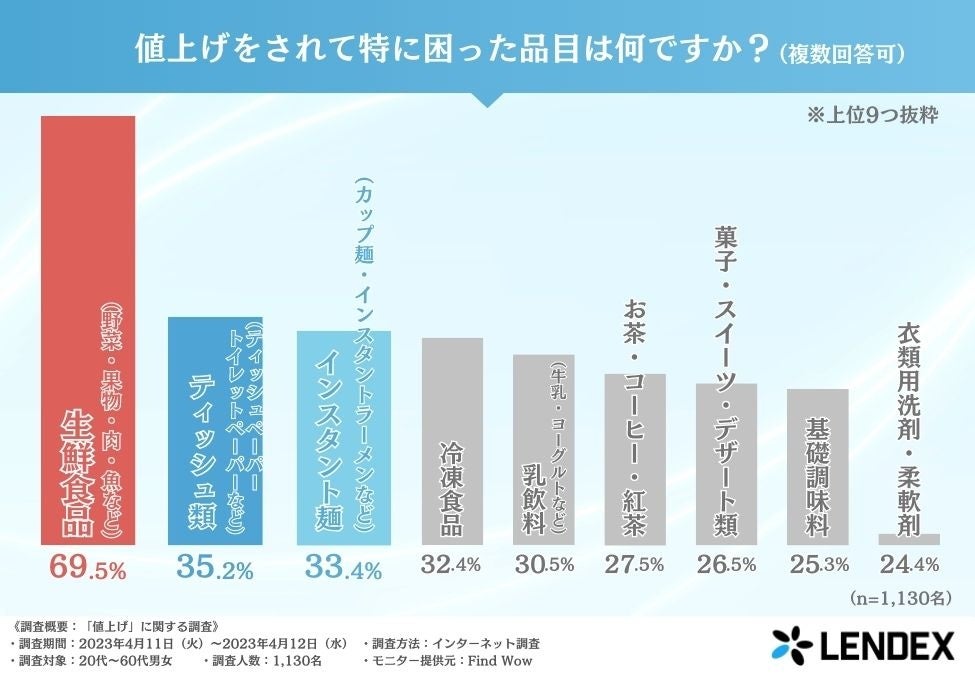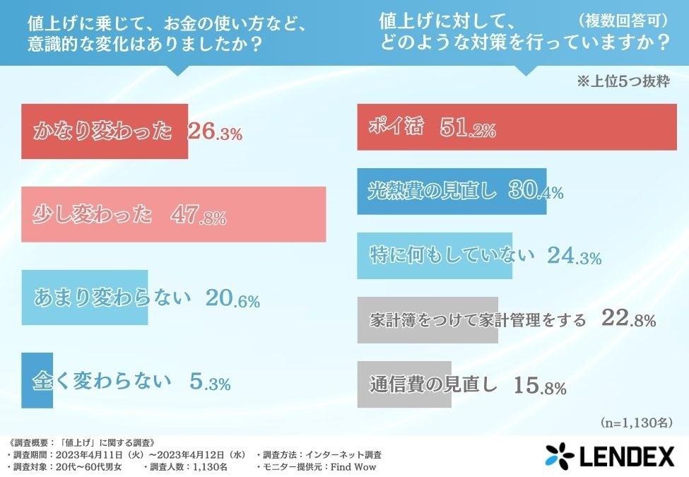 株式会社LENDEX(本社所在地:東京都渋谷区、代表取締役:深澤 克己)は、20代〜60代の男女を対象に、「値上げ」に関する調査を実施しました。