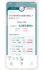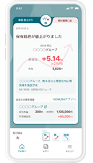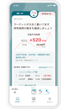 取引だけではなく、投資情報の収集や保有資産の管理もできる、「忙しい人でも資産運用を楽しめる」アプリです。資産運用の際の「資産の現状把握」「情報収集」「スムーズな売買」といった一連の煩雑な行動を、1つのアプリでサポートします。国内株式だけでなく、外国株式や国内外の債券、投資信託などお客様が当社にお預けいただいている資産の状況をまとめて把握・管理ができるほか、マーケット情報や保有資産に関連するニュースも確認できます。