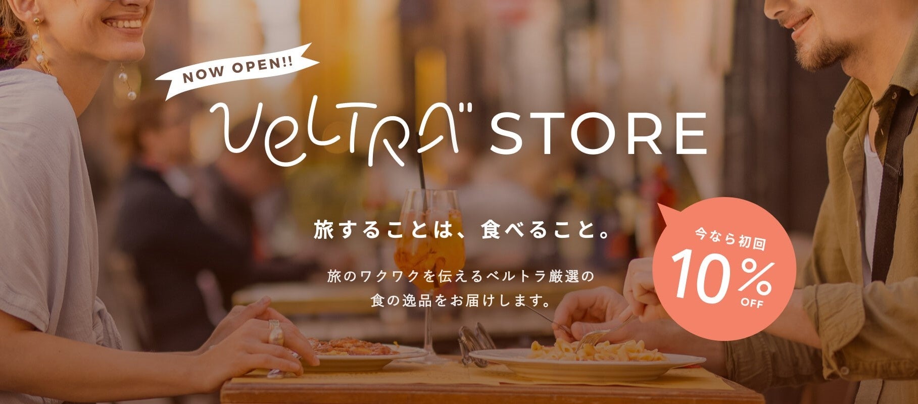 現地体験型アクティビティ専門予約サイト『ベルトラ』を運営するベルトラ株式会社(本社:東京都千代田区、代表取締役社長:二木 渉)は、食の力によって旅行マインド(=旅に出たいという想い)を喚起させる、日本そして世界の料理やワインなど400種類以上の商品をオンライン販売する新サービス『VELTRA STORE(ベルトラストア)』を2022年9月10日(土)にオープンいたします。また初めてご利用のお客様に、ストアで使える10%割引クーポンをプレゼントするキャンペーンも実施します。