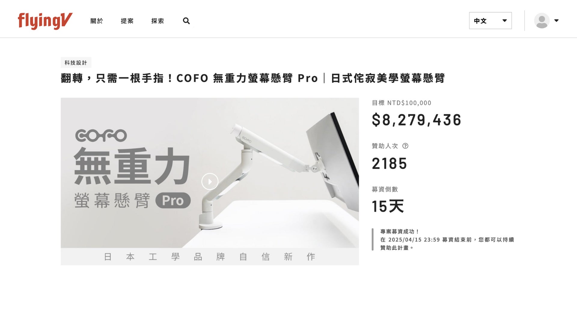 【米デザイン賞受賞】「COFO無重力モニターアームPro」、アメリカの国際デザイン賞にて最高賞のプラチナ賞を受賞