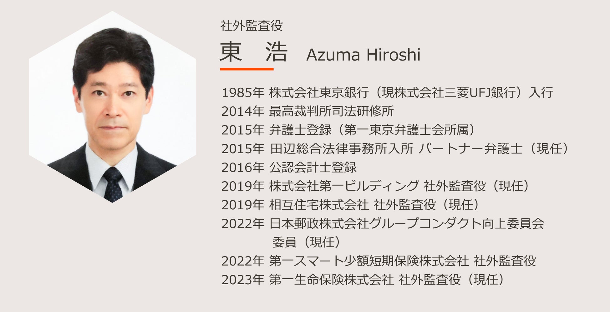 ・社外監査役: 東 浩 【新任】