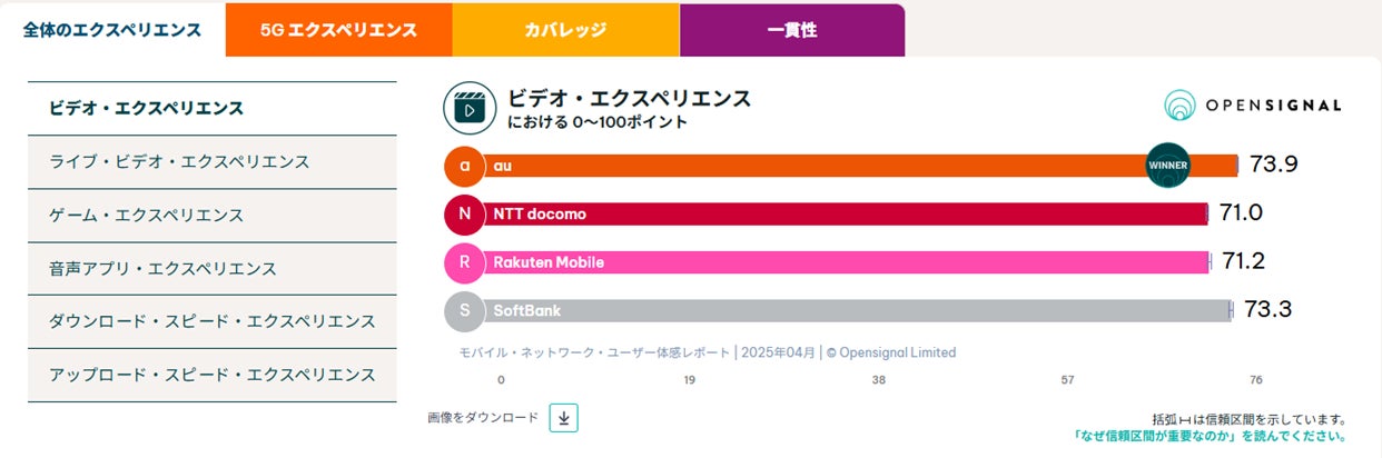 auが「信頼性エクスペリエンス」で首位、楽天モバイルは「アップロード・スピード」でリード