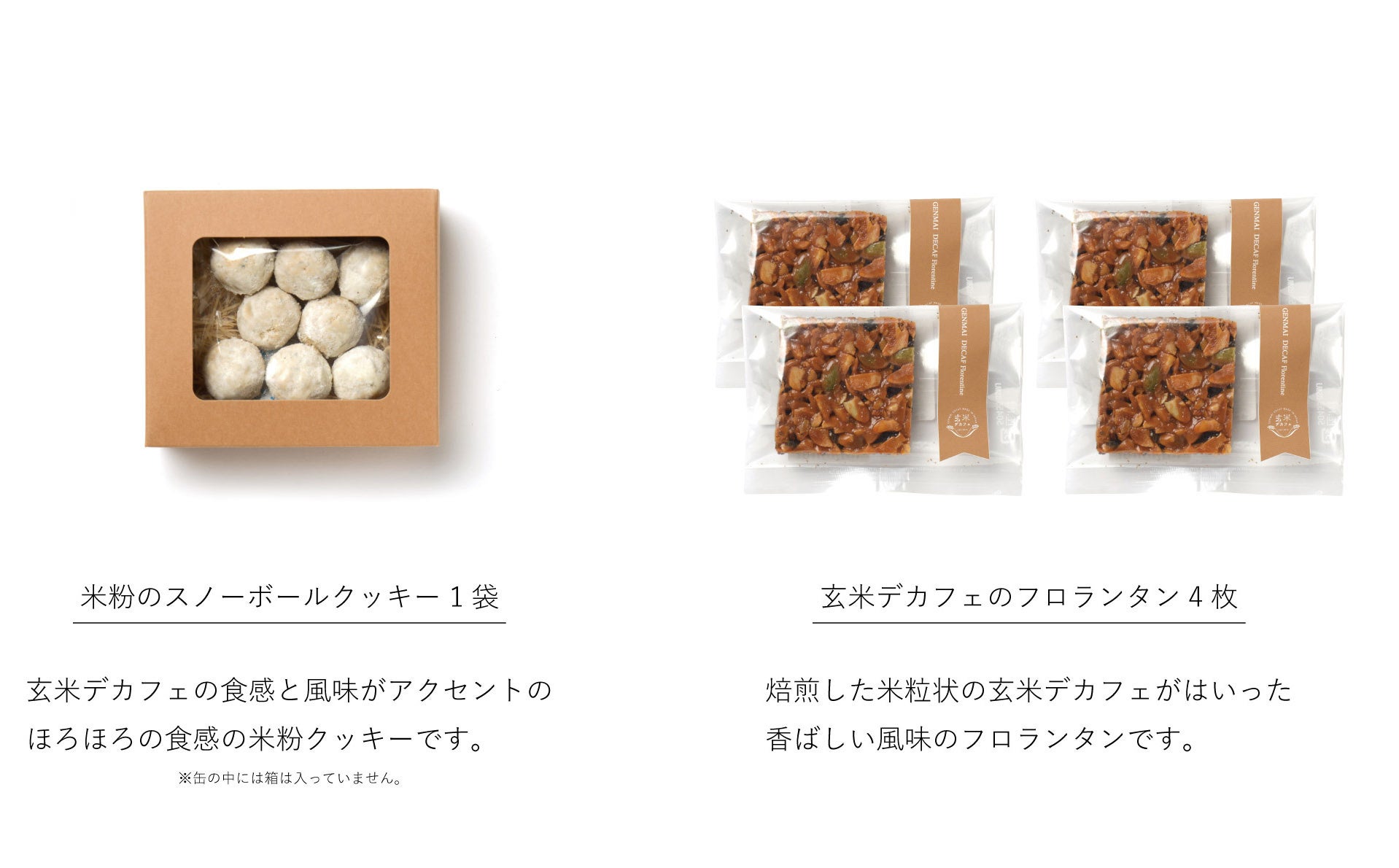玄米デカフェをそのまま配合したグルテンフリーの米粉クッキーです。ホロホロ食感と、玄米デカフェの苦味が絶妙にマッチ。