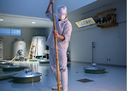●良い酒造りのため手洗米 麹で使う米から、仕込みで使う米まで、全て手洗米で、丹精に手をかけています。一般的に機械洗米が主流ですが、精米歩合が小さいほど水分の吸着は早くなるため、しっかりと手作業で、全体の吸水の誤差がないようにみています。