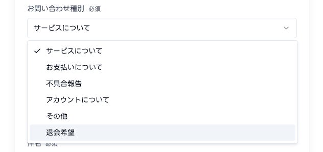 今回のアップデートにより、ログインした状態でお問い合わせフォームの「退会希望」を選択すると、画面上で注意事項を確認したうえで退会手続きができるようになりました。