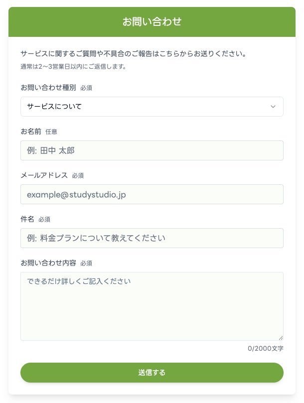 スタスタApps専用の「お問い合わせフォーム」を新設