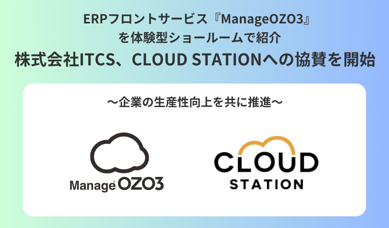 ERPフロントサービス『ManageOZO3』を体験型ショールームで紹介株式会社ITCS、CLOUD STATIONへの協賛を開始