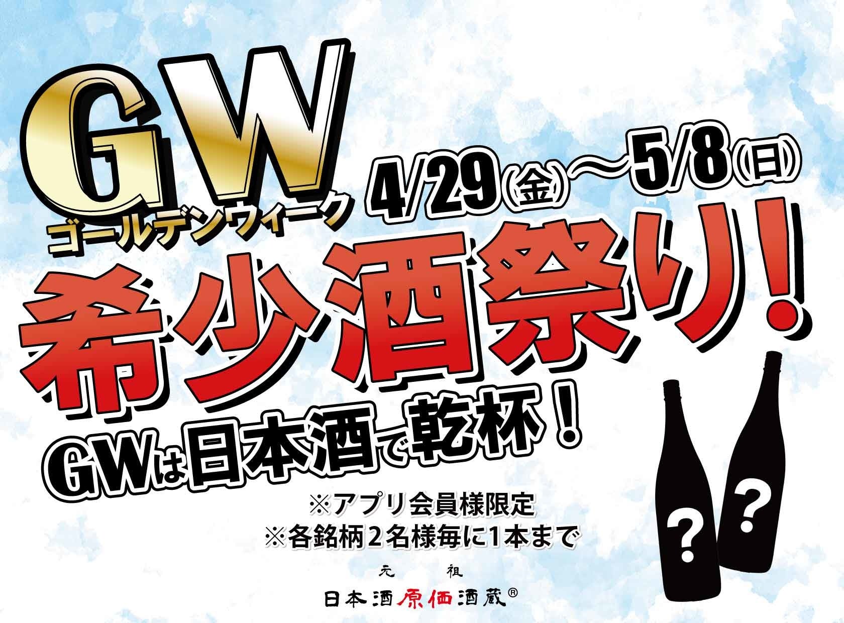 4月29日(金)~5月8日(日)に日本酒原価酒蔵全店にてGW限定特別イベント 希少酒祭りを開催します。