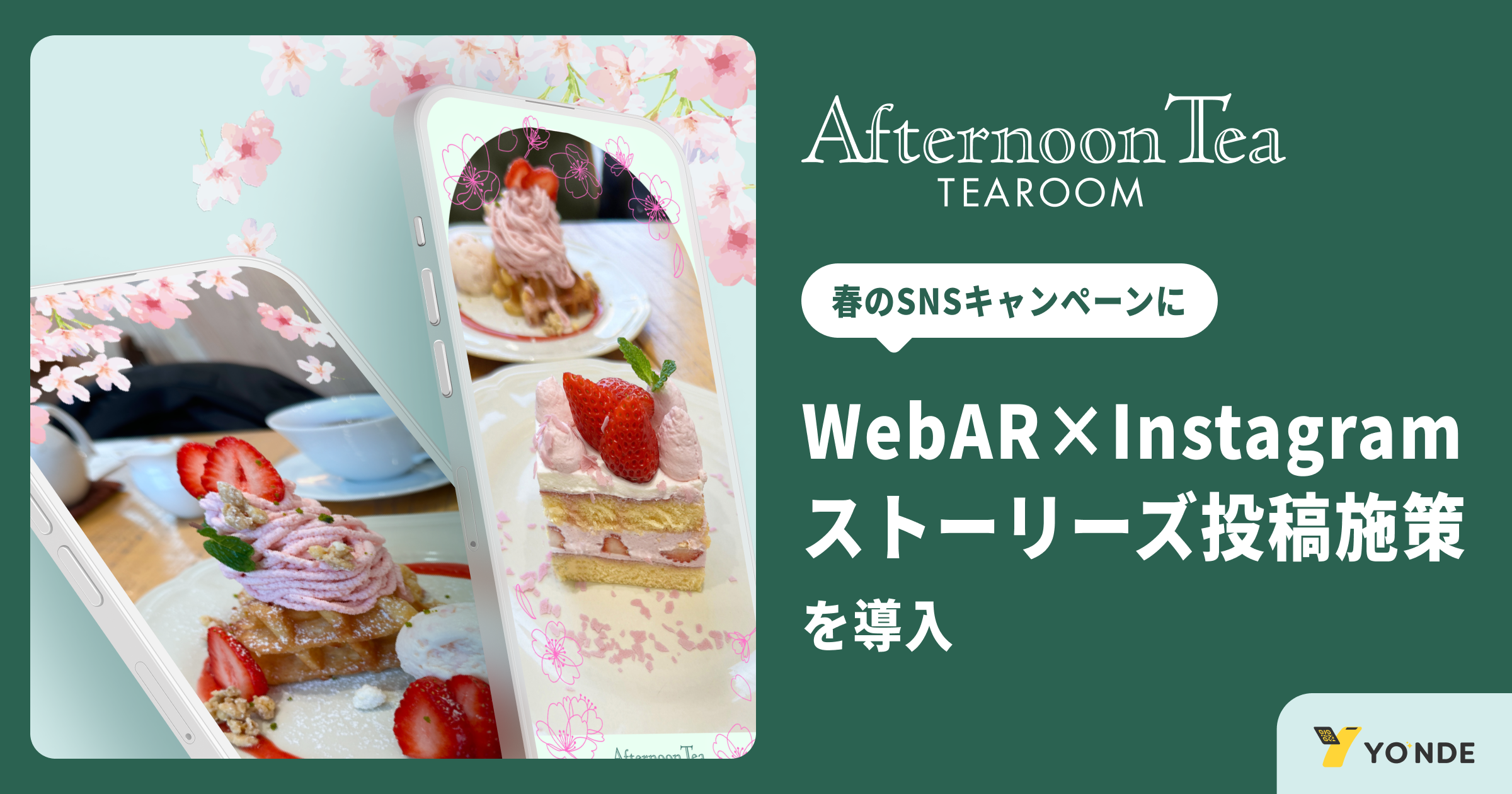 株式会社YONDE(本社:福岡県福岡市中央区、代表取締役:田坂 洋一、以下「YONDE」)は、アイビーカンパニー株式会社(本社:東京都渋谷区千駄ヶ谷、代表取締役社長:塚田龍平)が運営する「アフタヌーンティー・ティールーム」による春のSNSキャンペーンにおいて、WebARによるフォトフレームの制作と、Instagramストーリーズ投稿収集ツール「ストーリーズBank」を組み合わせた統合キャンペーンパックを提供いたしました。