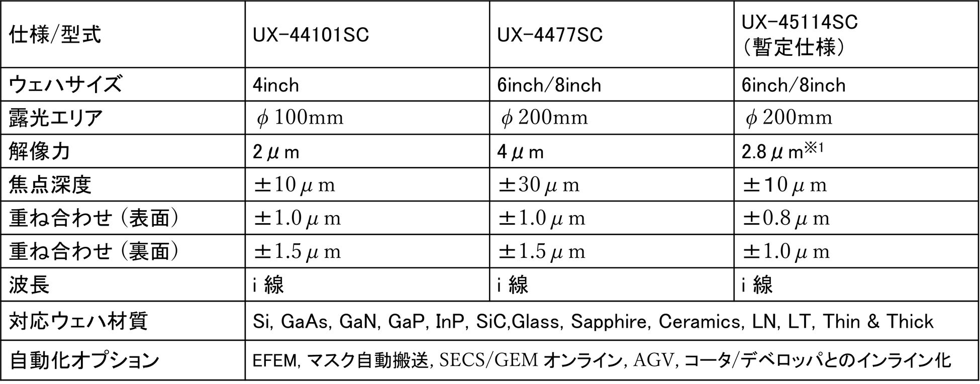 ウェハ向け一括投影露光装置UX-4シリーズの新製品 「UX-45114SC」を受注開始