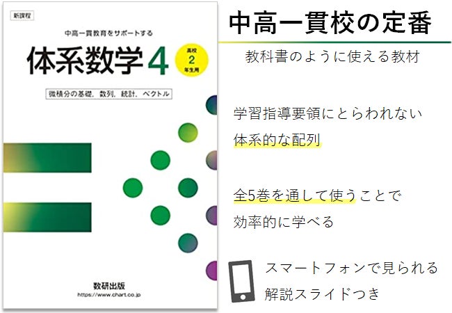 中高一貫校の定番教材「体系数学4」発売。例題の解説スライドがスマートフォンで見られます