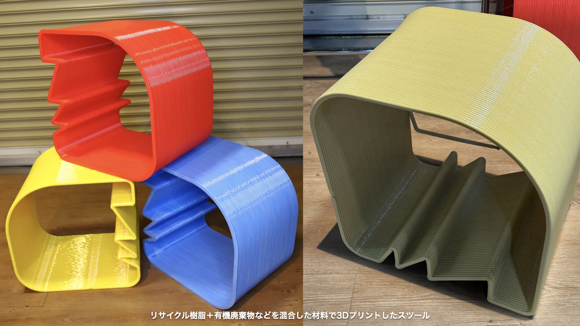 さらに、バイオ炭化装置やMF式混合溶融装置を活用してつくられたサスティナブル材料を用いた3Dプリント製品も展示予定です。