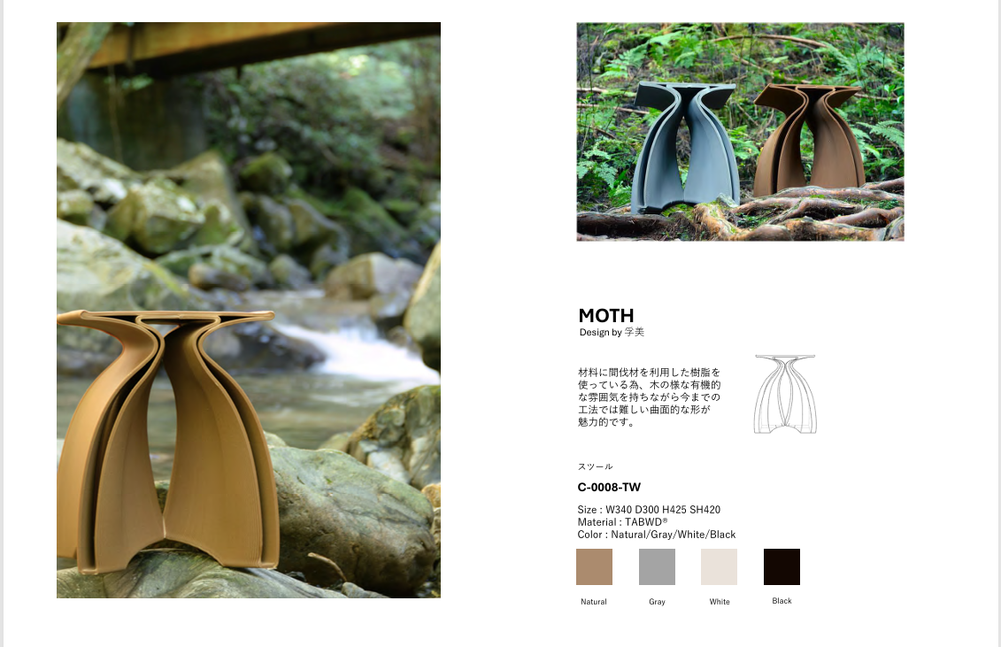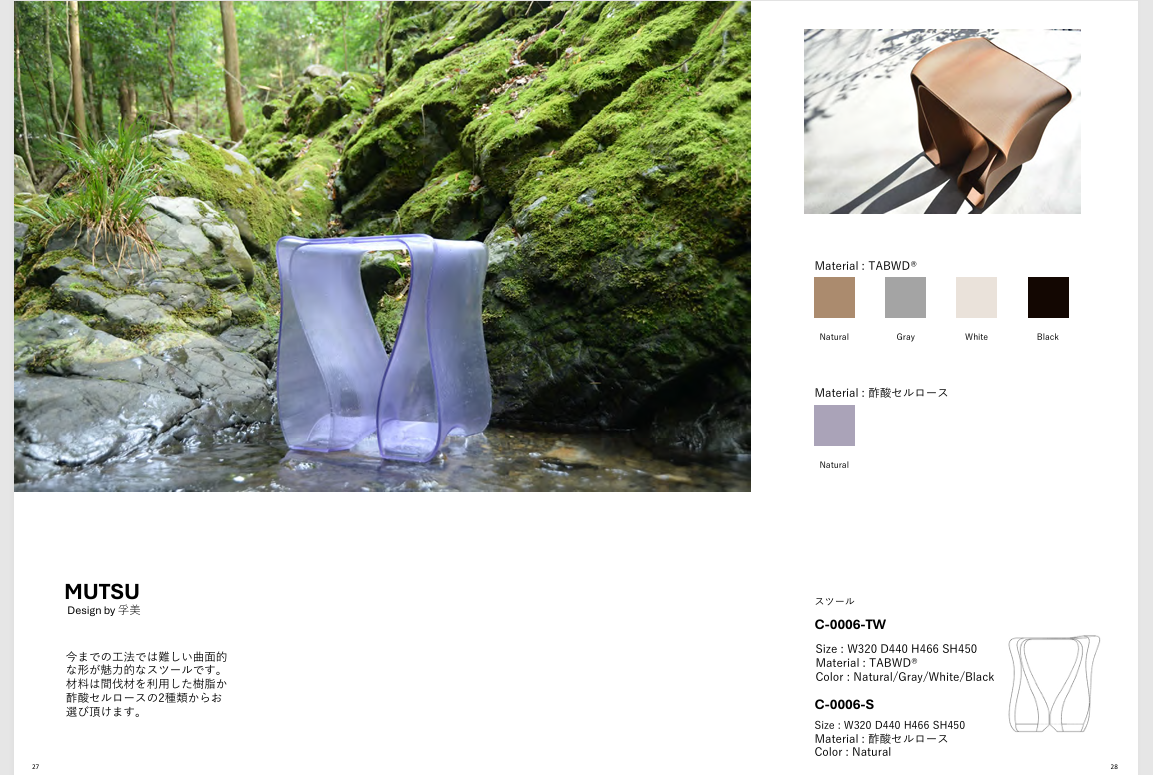また、弊社のEXF-12ユーザーの株式会社前田技研様のサスティナブル材料を使った3Dプリント家具ブランド「孚美(Fuubi)」。こちらも同社のご厚意で今回特別に展示します。ぜひ会場でご覧ください。