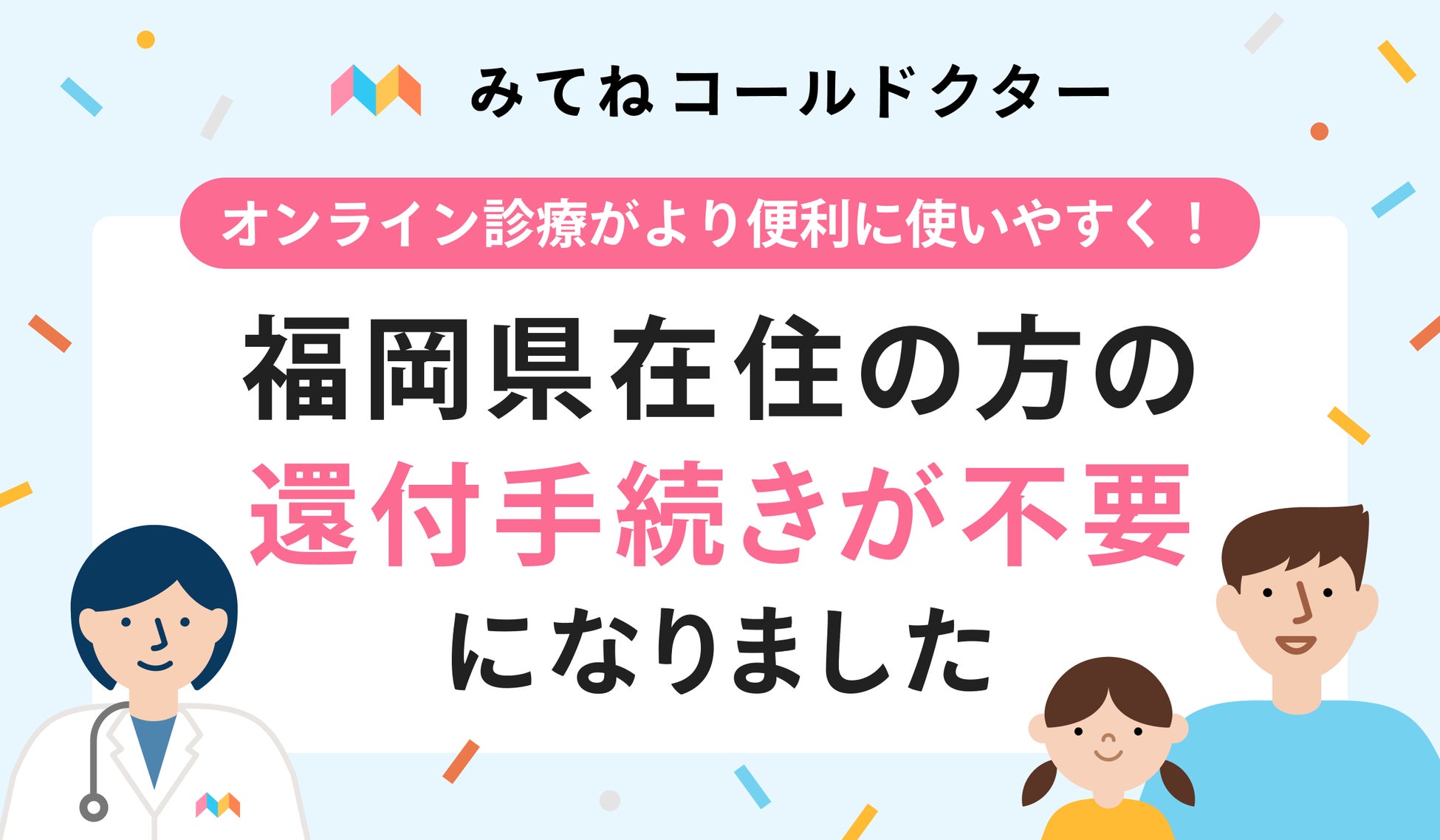 医師監修オンライン診療アプリ「みてねコールドクター」、東京都・千葉県・埼玉県・愛知県に加え新たに福岡県在住の方の還付手続きが不要に