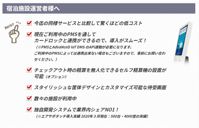 ■業界最安値の無人チェックインシステム『AdvaNceD IoTスマートチェックイン』シリーズ