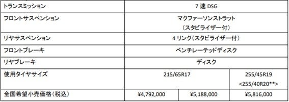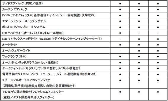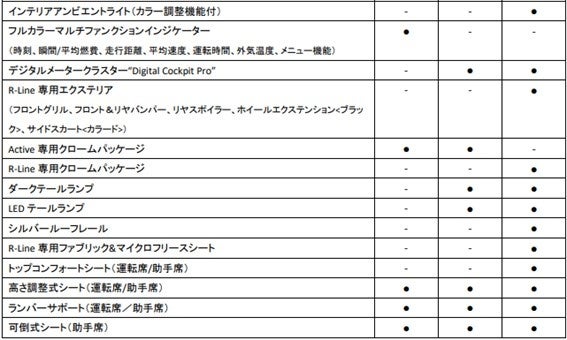 諸元表や主要装備表、全国希望小売価格やオプションなどは以下をご参照ください。