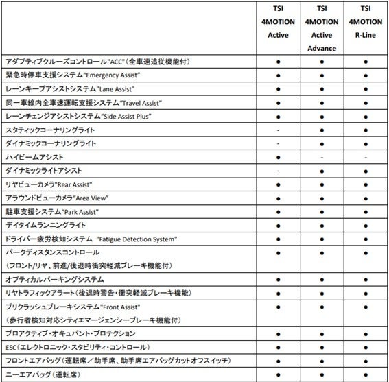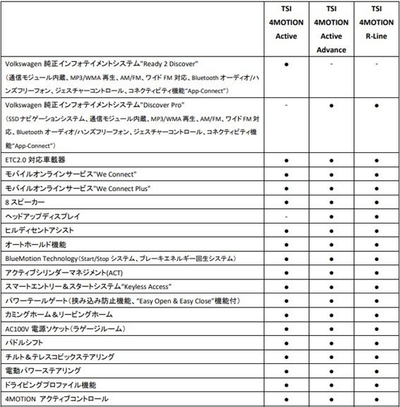 新型「Tiguan TSI 4MOTION」主要装備一覧