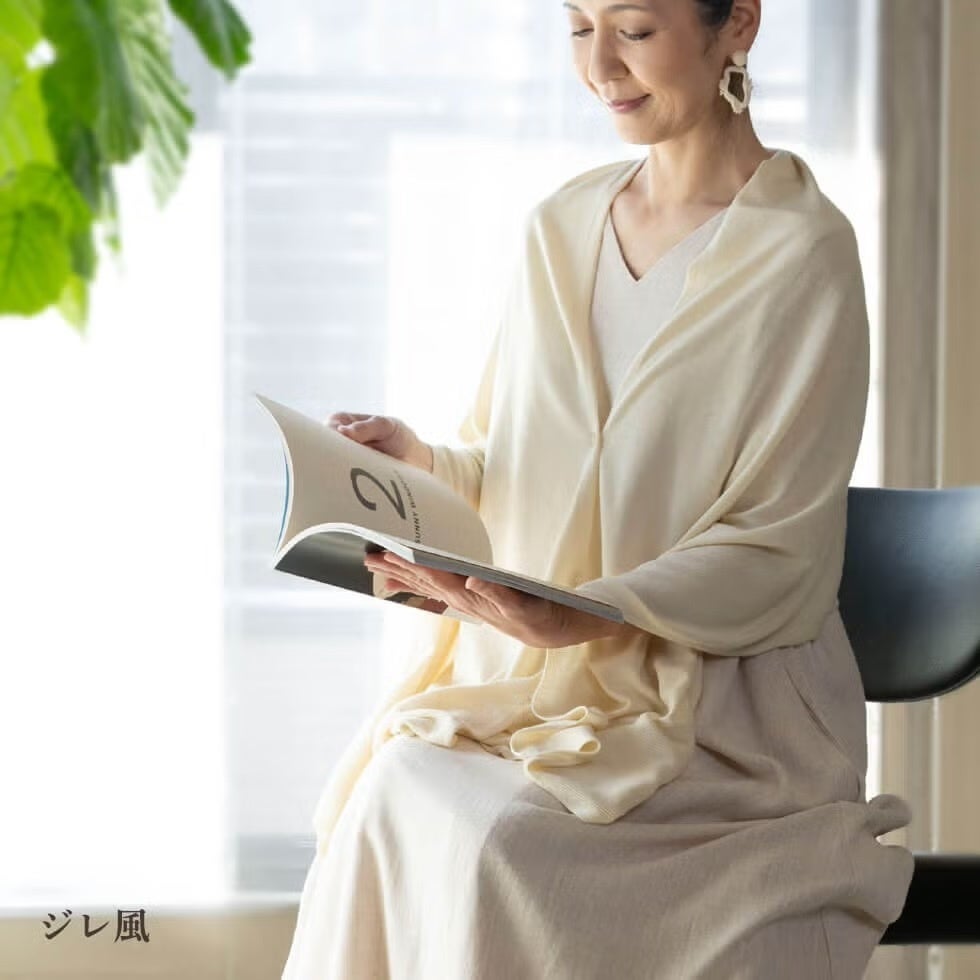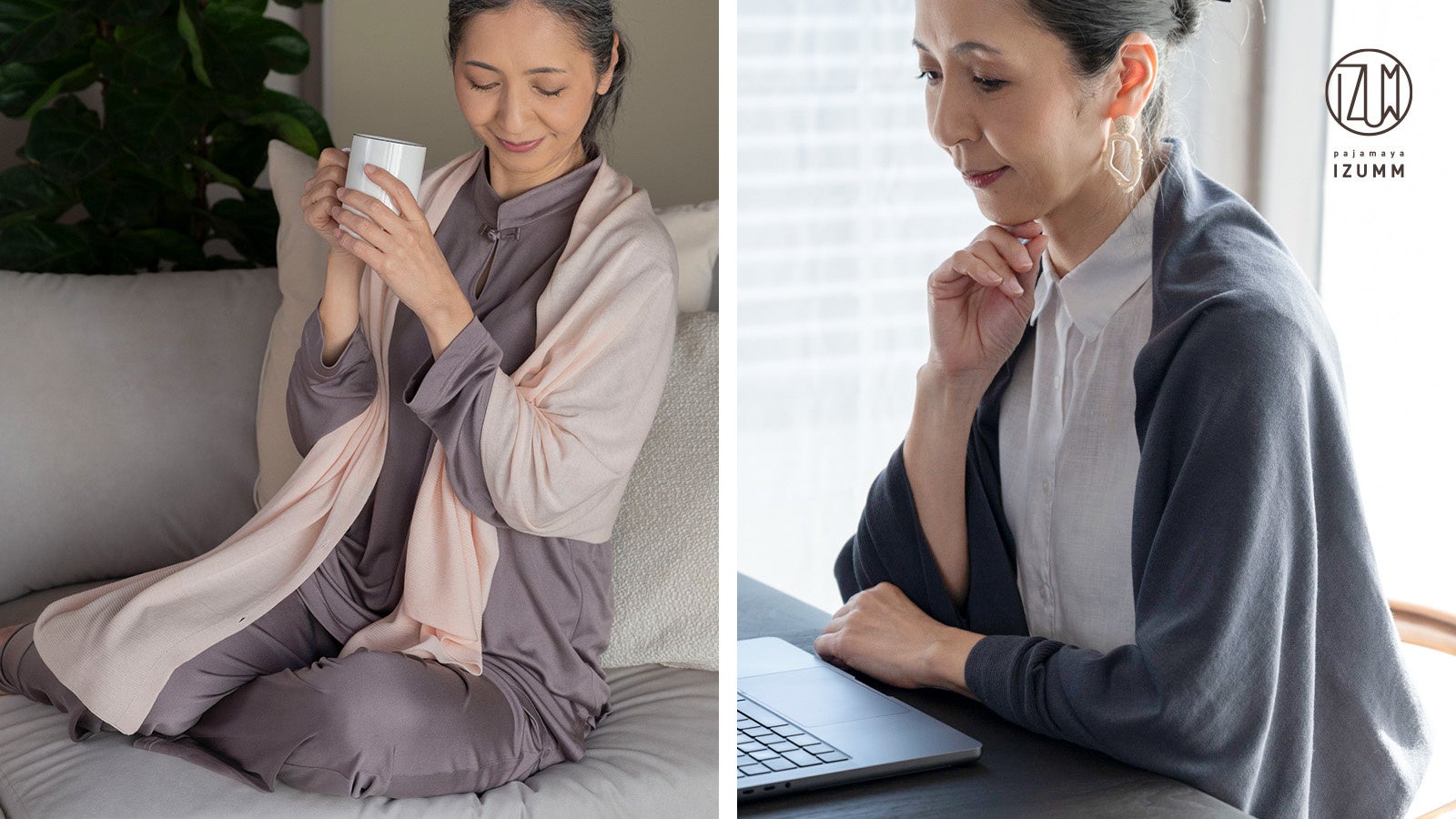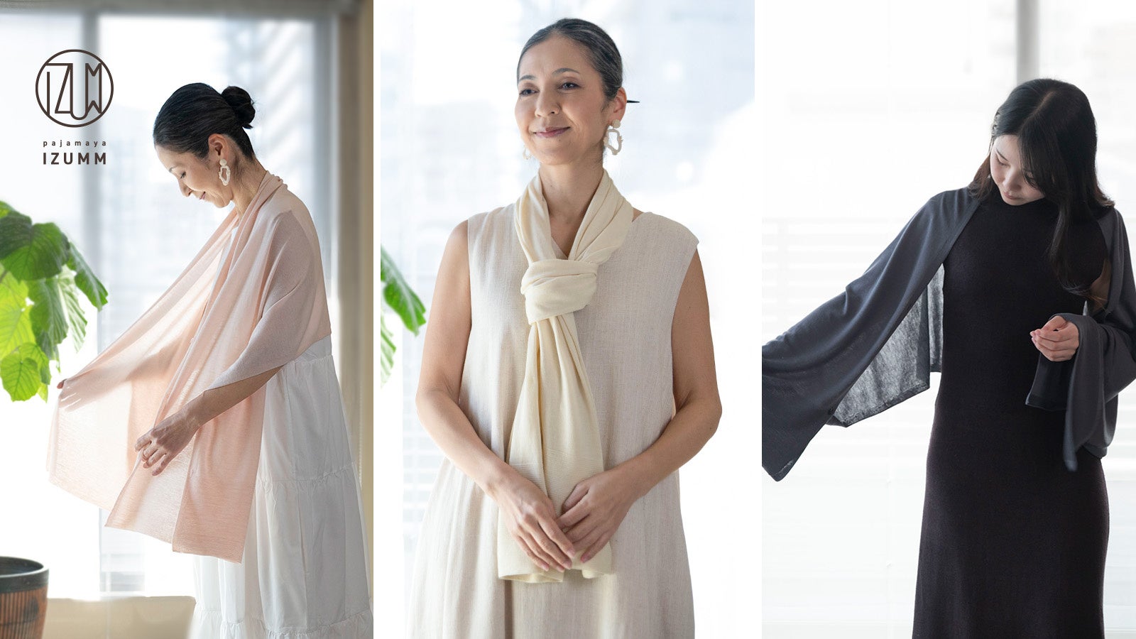 「カーデはかさばる、ストールは落ちる」悩みを解決。冷えとストレスから守る“着るストール”をパジャマブランドが発売|パジャマ屋IZUMM