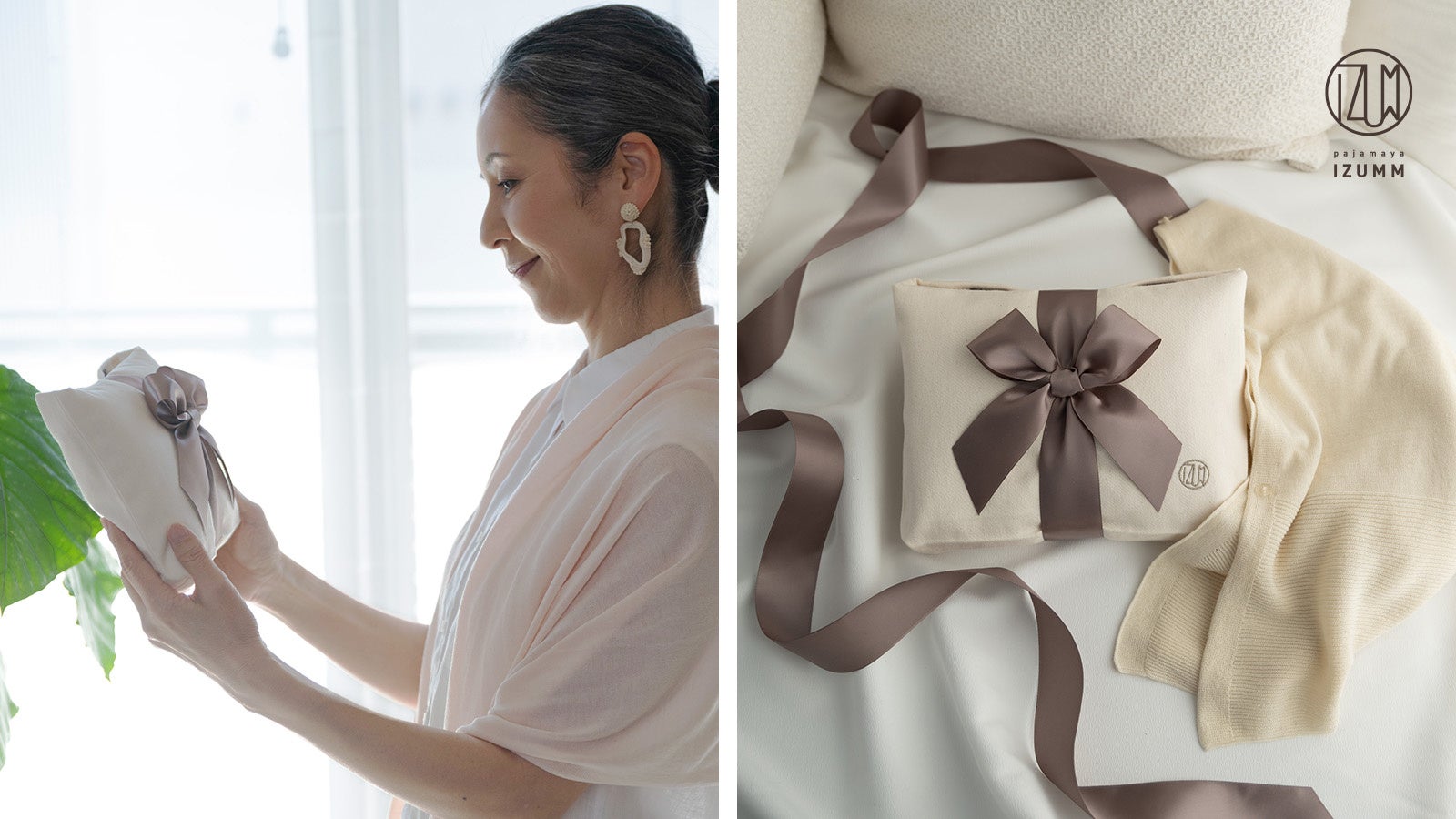「女性スタッフが多い〈パジャマ屋IZUMM〉だからこそ、日常の"あったらいいな"を大切にしています。ボタンの位置やサイズ、長さのバランスに至るまで、何度も試行錯誤を重ねました。眠りにこだわる私たちが、目覚めてからの時間にも寄り添いたい——そんな思いが詰まった一枚です。贈る方の気持ちが、さりげなく、やさしく伝わるストールに仕上がったと感じています。」