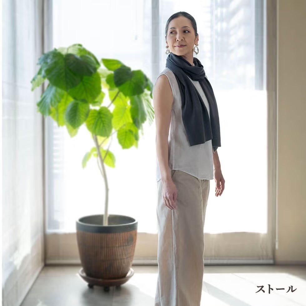 その考え方を日中にも広げ、“着るストール”としてかたちにしたのが「おりこうストール」です。