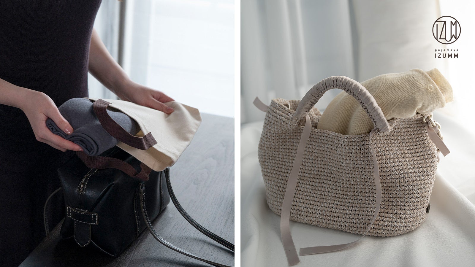 このミニバッグは、バッグの中で生地が引っかかったり汚れたりしないようにという、持ち運び時のストレスを軽減する思いやりから生まれました。