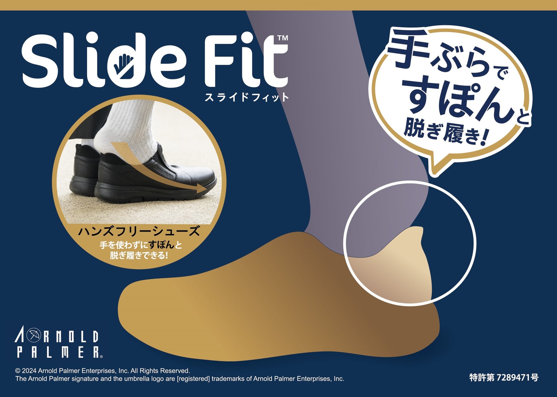 株式会社シードコーポレーションは、2024年秋冬コレクションとして、特許取得のハンズフリー技術『Slide Fit』を搭載した新モデルの発売を開始しました。アーノルド・パーマーブランドのライセンスのもと、2つの新モデルは、機能豊富でハンズフリーの利便性を追求しています。「Slide Fit」は、忙しい現代の人々のニーズに合わせて開発され、靴の着脱が手間なく行えるため、靴選びの大きな選択肢のひとつとなることでしょう。また、「Slide Fit」テクノロジーは、立ったままでも座ったままでも、靴を簡単に履けるよう設計されています。