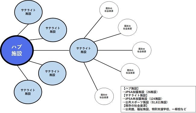 「障がい者スポーツセンター協議会」加盟の26施設=ハブ施設を中心とした、サテライト施設や地域の社会資源とのネットワーク化が重要である。