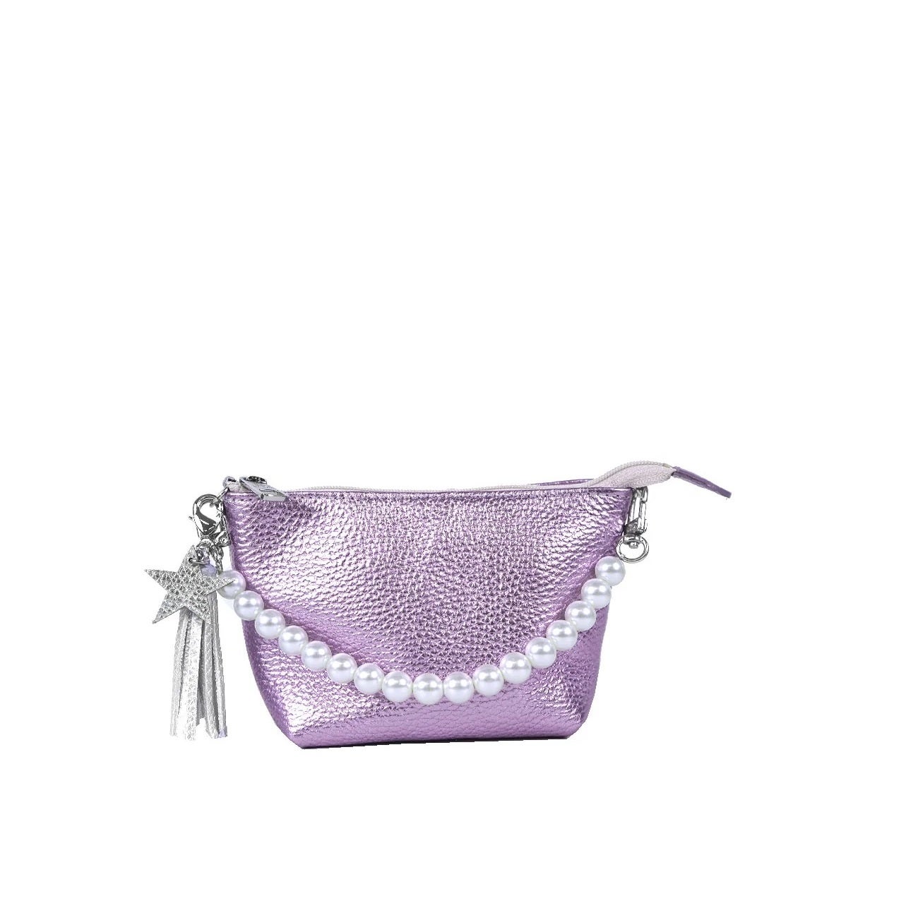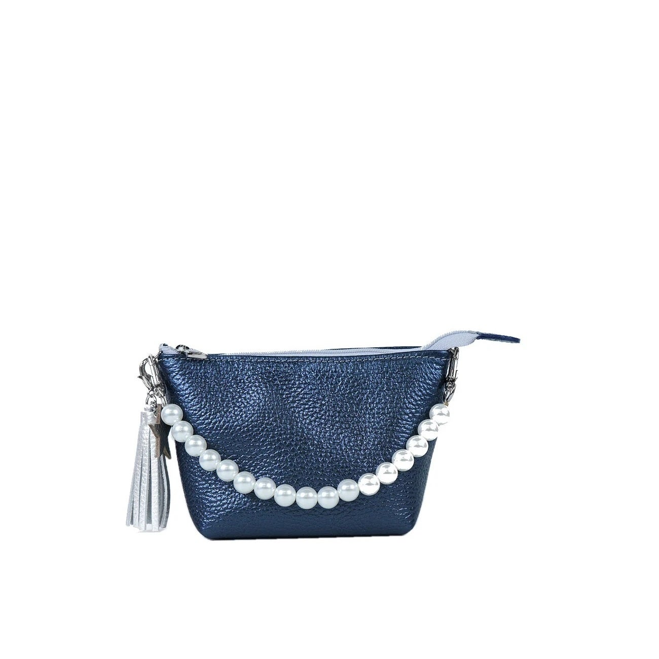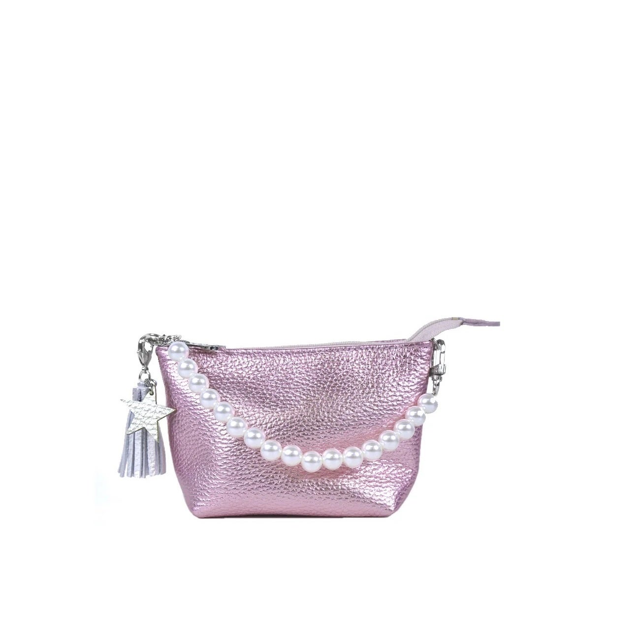 可愛らしいデザインのレザーポーチは、取り外し可能なパールのショートハンドルが付いているので、ミニバッグに変身させて、普段使いからパーティーシーンまで幅広く活躍します。