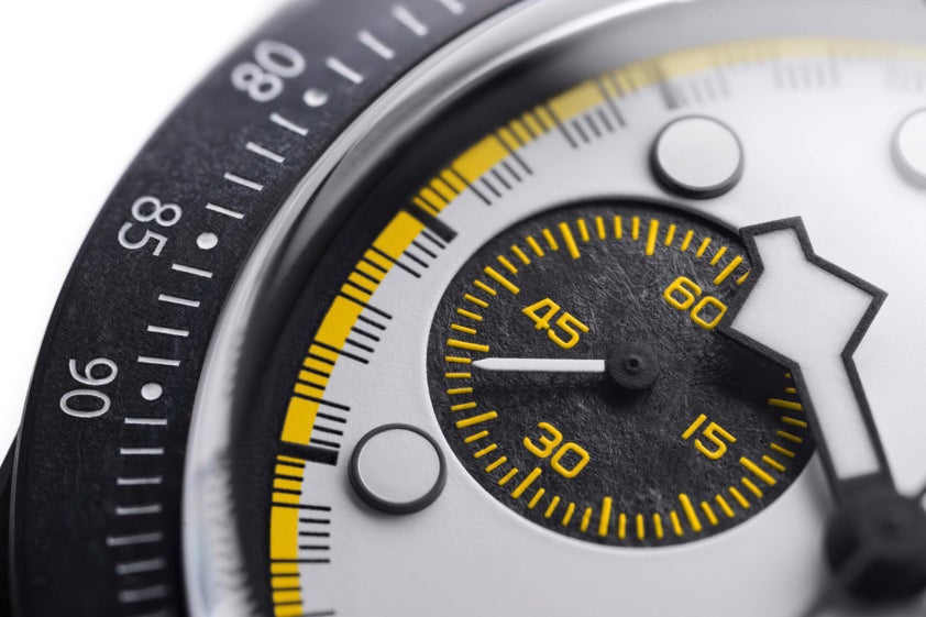 ブラックベイ クロノ “カーボン 26”のデザインのアクセントは、VCARB 03と名付けられたVisa Cash App Racing Bullsチームのマシンにオマージュを捧げている。エンジンカウルにあしらわれている鮮烈なイエローが“カーボン 26”のダイアルを彩り、ハイスピードの世界観をより一層際立たせている。ブラックベイ クロノ “カーボン 26”は、進化し続けるチューダーのモータースポーツの歴史におけるこの重要な年にオマージュを捧げ、2,026本のみ製造される。また、ケースバックには固有の番号が刻まれる。
