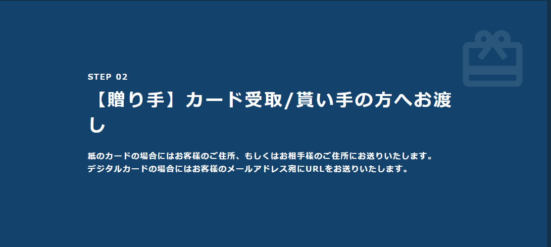 温かみを込めて贈りたい方は紙のギフトカードを、手軽に贈りたい場合にはデジタルカードを贈ることができます。