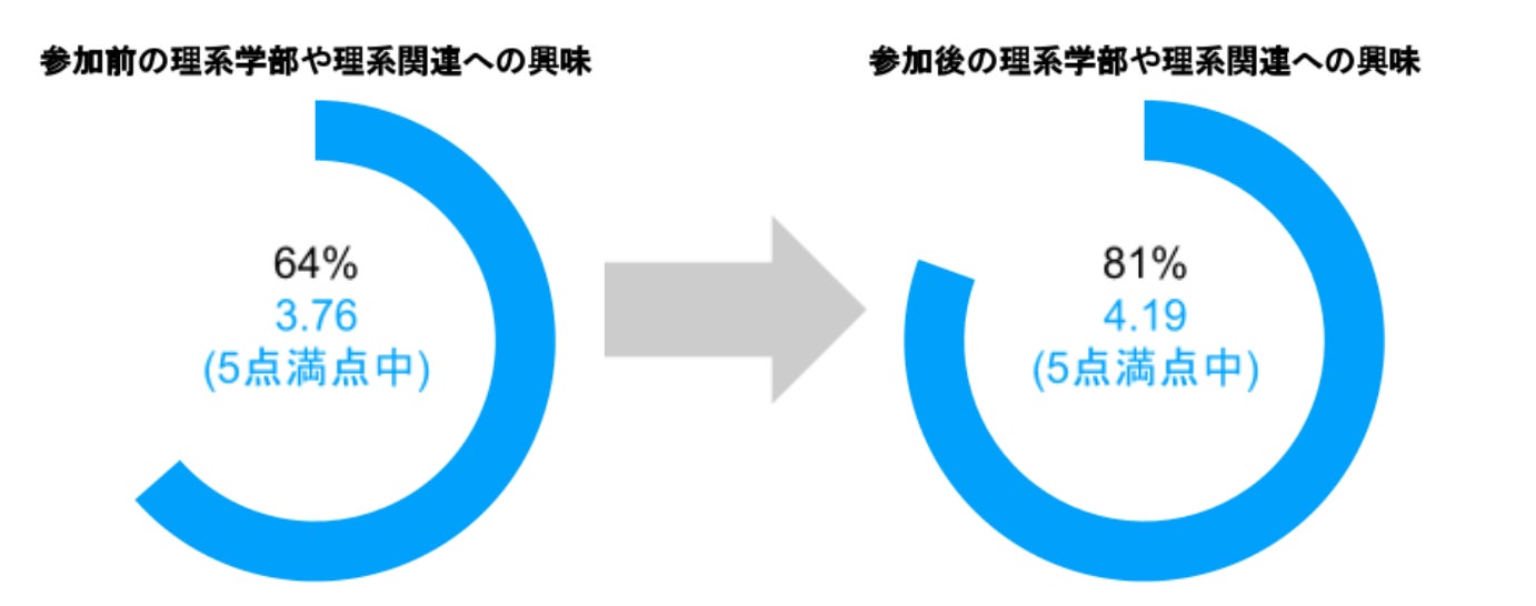 ・参加前に理系学部や理系関連への興味がある人は64%。参加後は81%に向上。