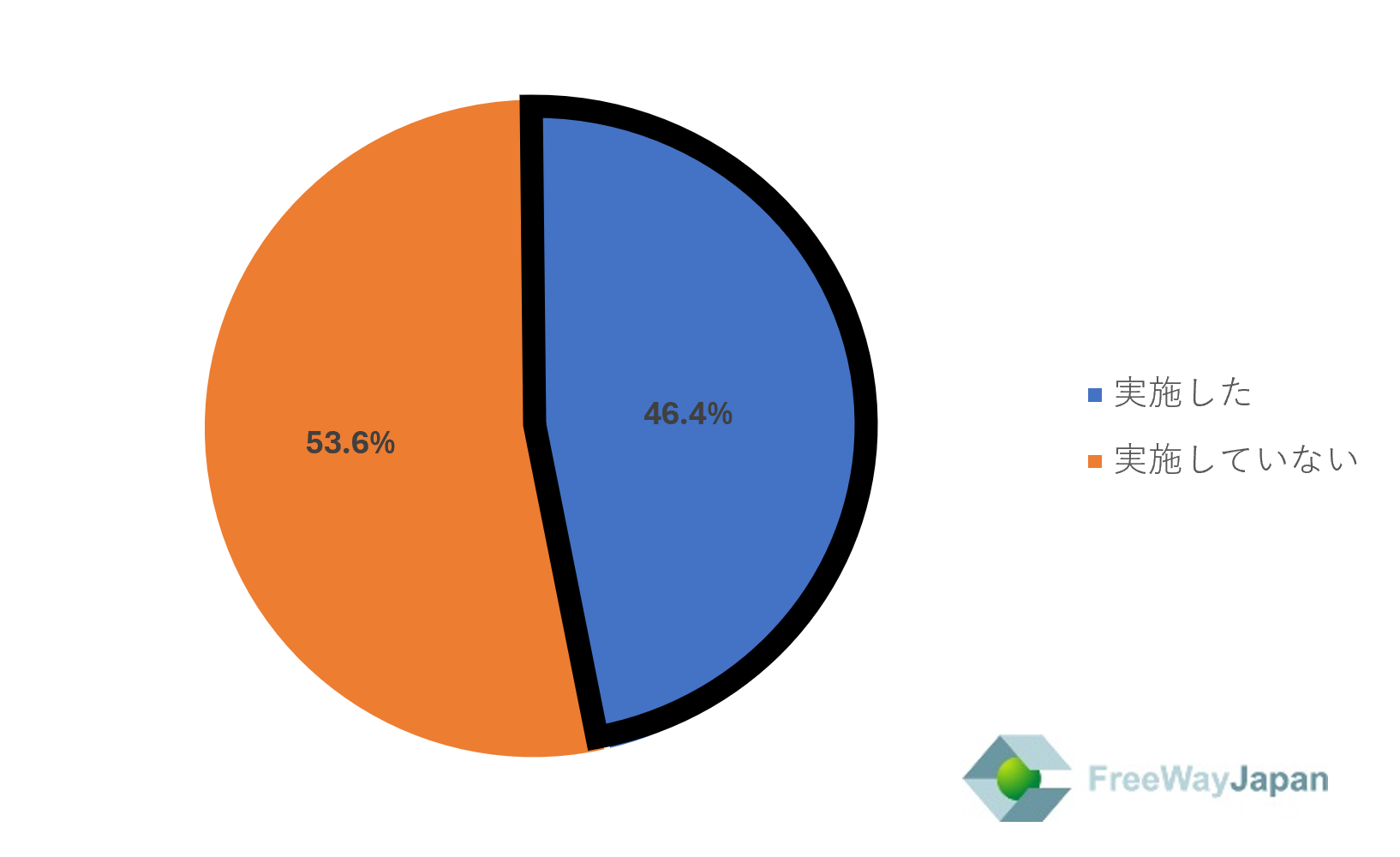 代表取締役の方に、過去半年以内に賃上げを実施したか聞いたところ、「実施していない」が53.6%、「実施した」が46.4%という結果だった。