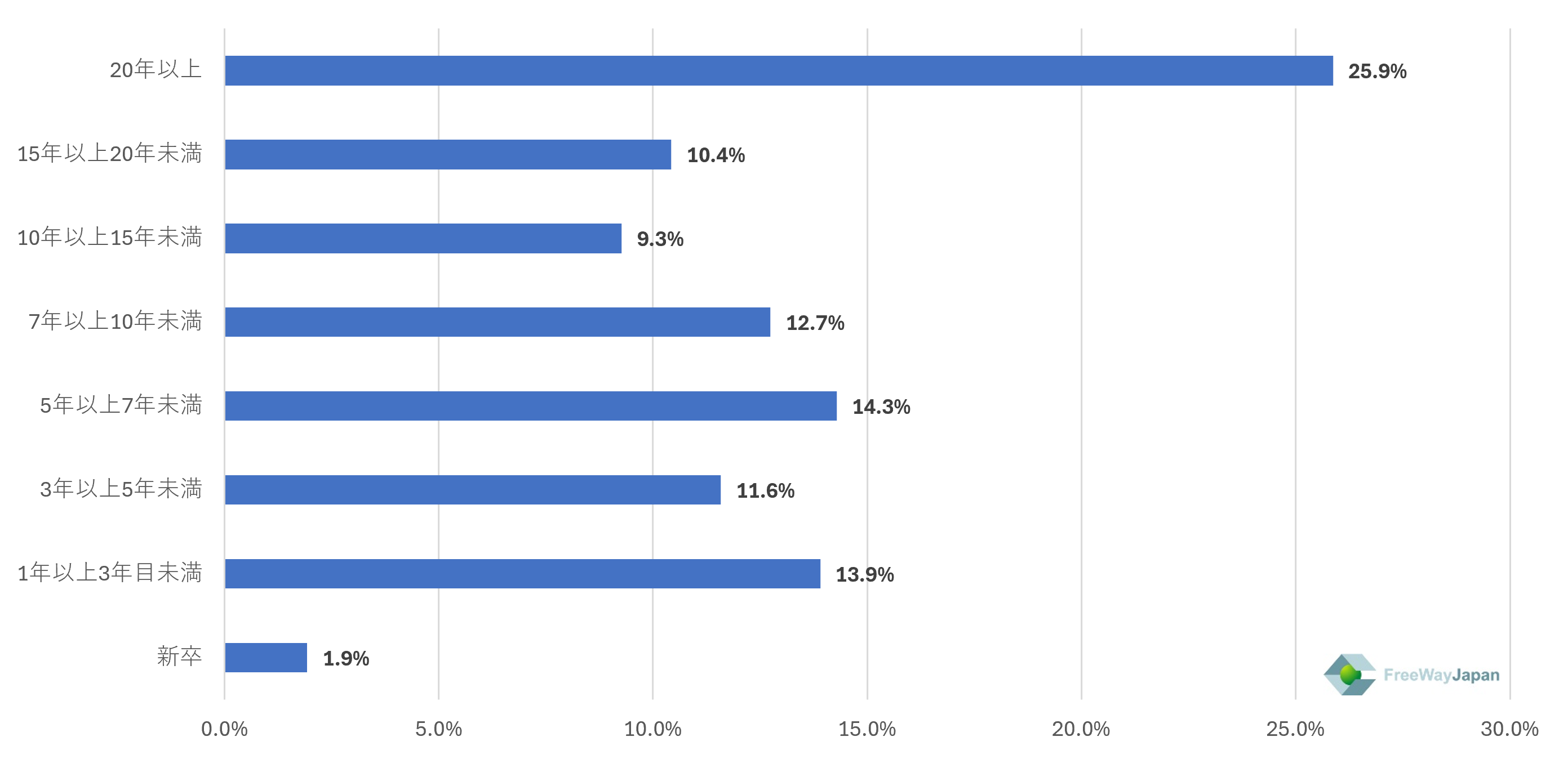 Q1. 勤続年数をお答えください。個人事業主の場合は事業を始めてからの年数をお答えください。 SA